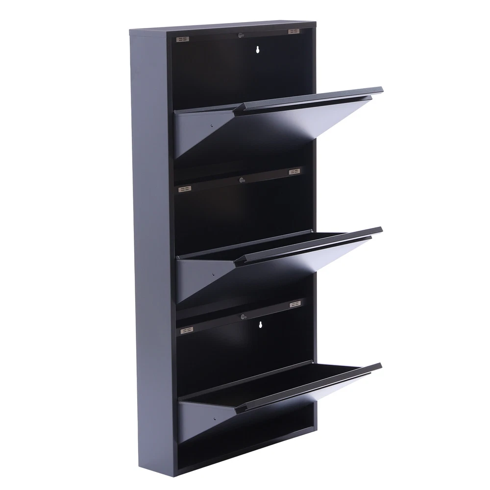 Specification Style: Modern Color: Grey Shape: Rectangular Number of Tiers: 3 Installation Type: Freestanding, Wall Mounted Material: Cold Rolled Steel Plate Thickness: 0.8mm/0.03inch Gross Weight: 13.5kg/29.76lbs Product Size: 50.5*12.2*103.3cm/19.88*4.8*40.67inch Package Size: 115*59*19cm/45.28*23.23*7.48inch Package Included 1* Shoe Cabinet Other Accessories for Installation Modern Shoe Rack Cabinet Storage Shoes With Drawer High-Capacity Home Furniture Description Do you believe that? A small entryway can be turned into a storage treasure trove. If you don't believe it, you can try our shoe cabinet. The three-tier design of this shoe cabinet can hold up to 9 pairs of shoes and the wall-mountable installation can save more space in your entryway. Hurry up and take it home with you! Key Features High-quality Material: The shoe cabinet is made of 0.03inch thick cold rolled steel, which is tough and not easily deformed. And the inside of the back of the shoe cabinet is welded reinforcement plates to make the shoe cabinet last longer. Great Home Decor: In classic grey with a simple design, this shoe storage cabinet provides a sense of modernization, which enriches your entire entryway and gives your house a new look, showing off your lifestyle. Large Capacity: The shoe cabinet has 3 tiers and can store up to 9 pairs of shoes to meet your storage needs. When it is mounted on the wall, the spare bottom floor can also be used to store slippers, etc. Humanized Design: Its surface is smooth without burrs, and it will not scratch the hand. The corners of the frame are designed with rounded corners, so you will not be injured during use. Relieving Your Fatigue: This beautiful shoe cabinet guards the door every day and welcomes you home. It allows you to put away your exhaustion as soon as you get home and start enjoying leisurely home life by taking off your shoes. Organized Lifestyle: This shoe cabinet cleverly integrates shoe storage into life, placing it at the doorway to store your messy shoes, making it pleasing to the eyes as soon as you open the door, bringing you an organized lifestyle. Thoughtful Design: Each layer is equipped with a damping switch and rubber magnetic suction, which not only reduces noise and prevents your hands from being injured when opening and closing, but also enhances the sealing of the shoe cabinet. Tipping Bucket Design: The entire shoe cabinet features a tipping bucket design for easy opening and closing, making it very easy to use. It also keeps dust out of the shoe cupboard. Space Saving: With a small footprint of 19.88*4.8inch at the bottom, it can be placed in every corner of the home. By using the doorway space wisely, even a small entryway can be turned into a storage treasure trove. Also, it can be mounted on the wall to save floor space. Easy to Clean: Its smooth surface makes it very easy to clean, all you need to do is wipe it down regularly with a dry cloth or wash away any serious stains. And the shoe cabinet is held in place with spring pins and is removable for easy cleaning. Avoiding Creases: This large capacity shoe cabinet can accommodate boots and medium boots, allowing them to stand securely or be placed at an angle to avoid wrinkles on the surface. Protective Shipping: In order to prevent the product from being damaged and bumped during transportation, we fill the package with anti-collision protection foam to protect your products to the maximum extent possible. Details Reinforced Shoe Hopper: The shoe hopper is reinforced on three sides, making it stable to open and close without wobbling. Top Platform: The top platform is spacious enough to hold keys, photo frames, etc., making it very practical. Pre-drilled Holes: There are four pre-drilled holes at the back of the shoe cabinet to allow you to fix the cabinet to the wall and prevent it from collapsing. Full Plate Layer: The layer rack is designed with a full plate, which can effectively prevent the ash on the bottom of the shoes from falling onto the shoes on the lower layer. At the same time, the full plate layer shelf places shoes more stably, and even high heels will not fall. Concealed Handle: The concealed pull handle is semi-circular. The curved shape is not only subtle and beautiful but also makes it easy to open and close the shoe cabinet without hurting your hands. Application It is suitable to be placed at the door, living room, or bedroom used to place slippers, casual shoes, high heels, boots, leather shoes, and other shoes, as well as some daily necessities such as keys, books, and umbrellas. It can be used as a bookshelf and storage rack. Installation 1. Place the shoe cabinet in the position where it is to be installed. 2. Mark the hole locations with a marker. 3. Punch the holes in the marked positions. 4. Insert the plastic expansion tube into the punched holes. 5. Screw the screws into the plastic expansion tube (halfway in first). 6. Align the shoe cabinet with the screw fixing holes and hang it. 7. Tighten the screws so that the back of the shoe cabinet fits snugly against the wall. 8. Check that the shoe cabinet is not loose. Specification Style: Modern Color: Grey Shape: Rectangular Number of Tiers: 3 Installation Type: Freestanding, Wall Mounted Material: Cold Rolled Steel Plate Thickness: 0.8mm/0.03inch Gross Weight: 13.5kg/29.76lbs Product Size: 50.5*12.2*103.3cm/19.88*4.8*40.67inch Package Size: 115*59*19cm/45.28*23.23*7.48inch Package Included 1* Shoe Cabinet Other Accessories for Installation Notes Please note that this is a slim shoe cabinet that can accommodate shoes up to 4.72inch in height and 12.2inch in length. Please allow the slight color difference caused by the shooting light and 1-3cm error due to manual measurement, and make sure you do not mind before ordering. Payment Delivery details Terms of sales About us Contact us Payment We accept ebay payment 。 Fees such as import duties, taxes are not included in the item price or shipping costs. These 
