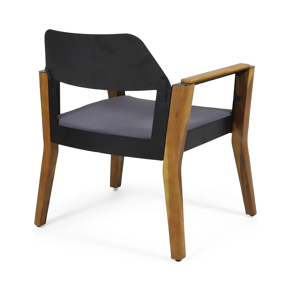 Specifications Place of Origin #originPlace# Main Color Teak Main Material Wood+Metal+Waterproof Fabric Dangerous Goods #dangerFlag# Dimensions & Weights Assembled Length (in.) 27.50 Assembled Width (in.) 21.75 Assembled Height (in.) 30.25 Weight (lbs) 50.71 Product Features Transitional Style for Versatile Outdoor Decor: Our outdoor acacia wood club chairs with cushions offer a transitional style that seamlessly integrates with any existing outdoor decor. Their sleek and modern design, coupled with classic touches, creates a modern industrial ambiance that complements any backyard, terrace, garden, or balcony. Acacia Wood for Long Lasting Durability: Crafted from sturdy acacia wood, these chairs are built to withstand the elements. This durable hardwood naturally resists outdoor factors, retaining its beauty without fading over time. The solid and heavy duty frames are also scratch-resistant, ensuring long-lasting performance. Water Resistant Fabric Cushions: Featuring water resistant fabric cushions, our outdoor club chairs provide a cozy seating experience while preventing moisture absorption. So they remain dry and comfortable even during unexpected rain showers or spills. Please note that while they are water resistant, they are not waterproof and should not be submerged in water. Easy Assembly with Complete Instructions and Tools: Setting up your outdoor club chairs is a breeze with our comprehensive assembly instructions and included tools. Each set comes with 2 chairs, allowing you to create a cozy seating area in your backyard or terrace in no time. Enhance your outdoor relaxation: Boasting exotic wooden frames and impressive and dependable metal details, these chairs introduce a contemporary industrial flair to your seating area. Whether you're indulging in a captivating read or enjoying a casual chat, these chairs provide unparalleled comfort and elegance. Description