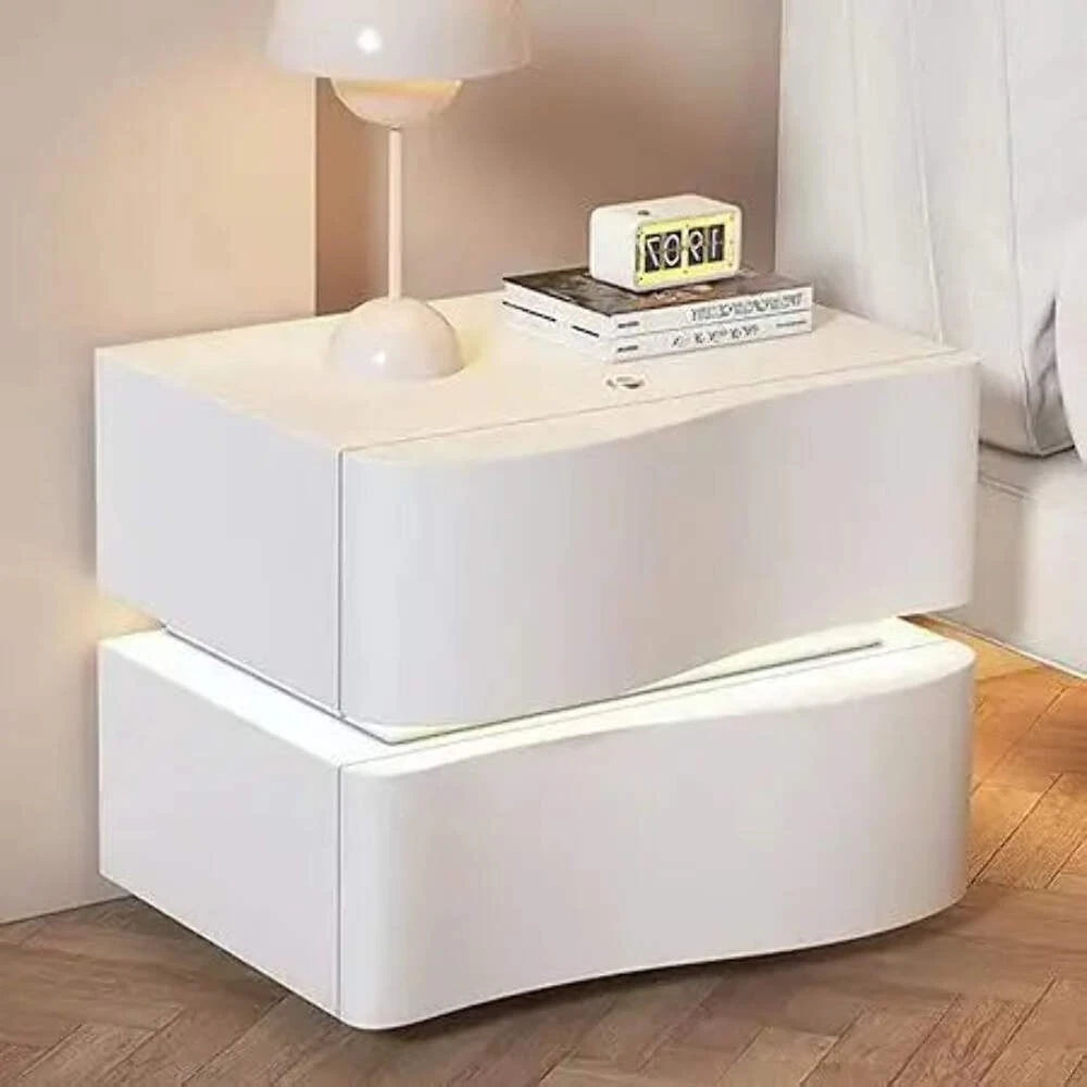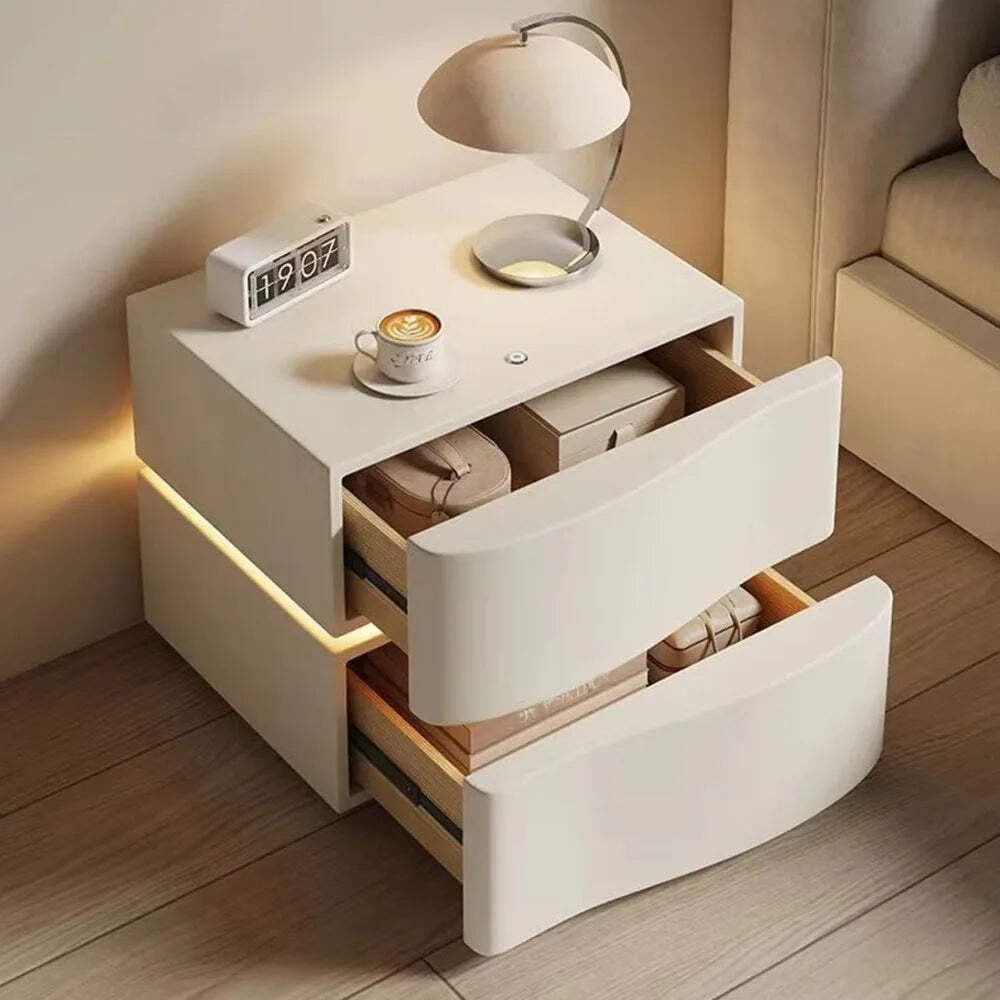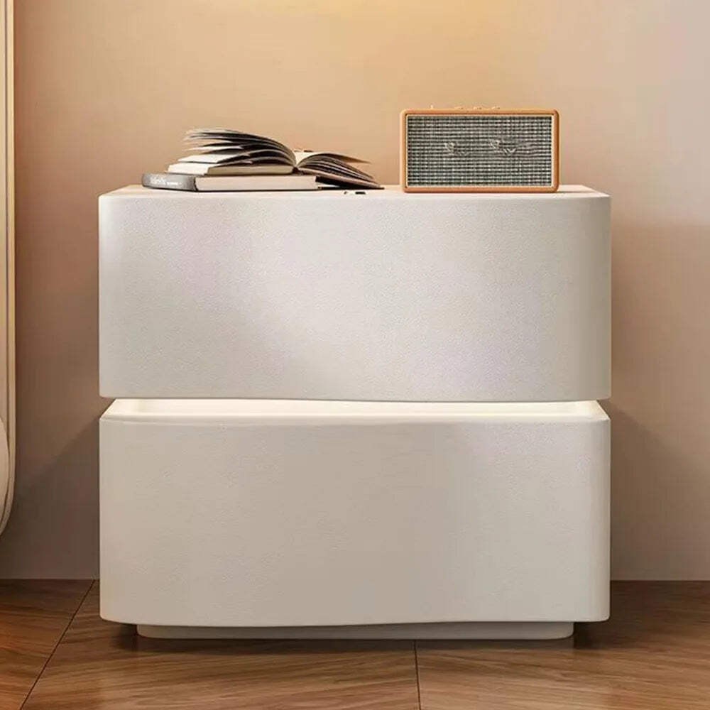 Wireless Charging Bluetooth Speaker Nightstand with Lock White Modern Bedside Table