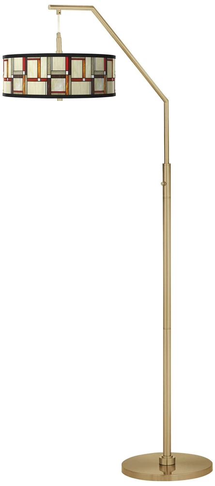 Shop Sale > Chandeliers Ceiling Lights Lamps Wall Lights Outdoor Lights Fountains Ceiling Fans Furniture Decor Modern Squares Giclee Warm Gold Arc Floor Lamp Style #356G8 PRODUCT DETAILS: 71 1/2" high overall. Base is 14" wide. Shade is 16" across the top x 16" across the bottom x 5 1/2" high. Weighs 23 lbs. Uses two maximum 100 watt standard-medium base light bulbs (not included). 4-position stem column switch. Switch positions: Right bulb on, left bulb on, both on, both off. Contemporary arc floor lamp from the Giclee Glow brand. Translucent Modern Squares shade. Shade has the exclusive pattern and is custom made to order. Shade printing process U.S. Patent # 7,347,593. Warm gold finish. Metal construction. 8-foot long cord. DESCRIPTION: Add style with this contemporary arc floor lamp design. It features a warm gold finish and a shade with a bottom diffuser to prevent glare. The shade shows off an exclusive Modern Squares shade pattern and is giclee printed and made to order. Stem switch allows for two different lighting levels for ultimate convenience. Shade printing process U.S. Patent # 7,347,593. *Free Shipping applies only to orders shipping to the 48 continental United States that qualify and meet the minimum purchase requirement; standard shipping only and select products excluded, including freight and oversized items. Free Returns valid on select items in United States only; does not apply to freight, clearance, Daily Sale, designs with giclee art shades, Color Plus and Tiffany Color Plus brand items, or certain items with designer shades.