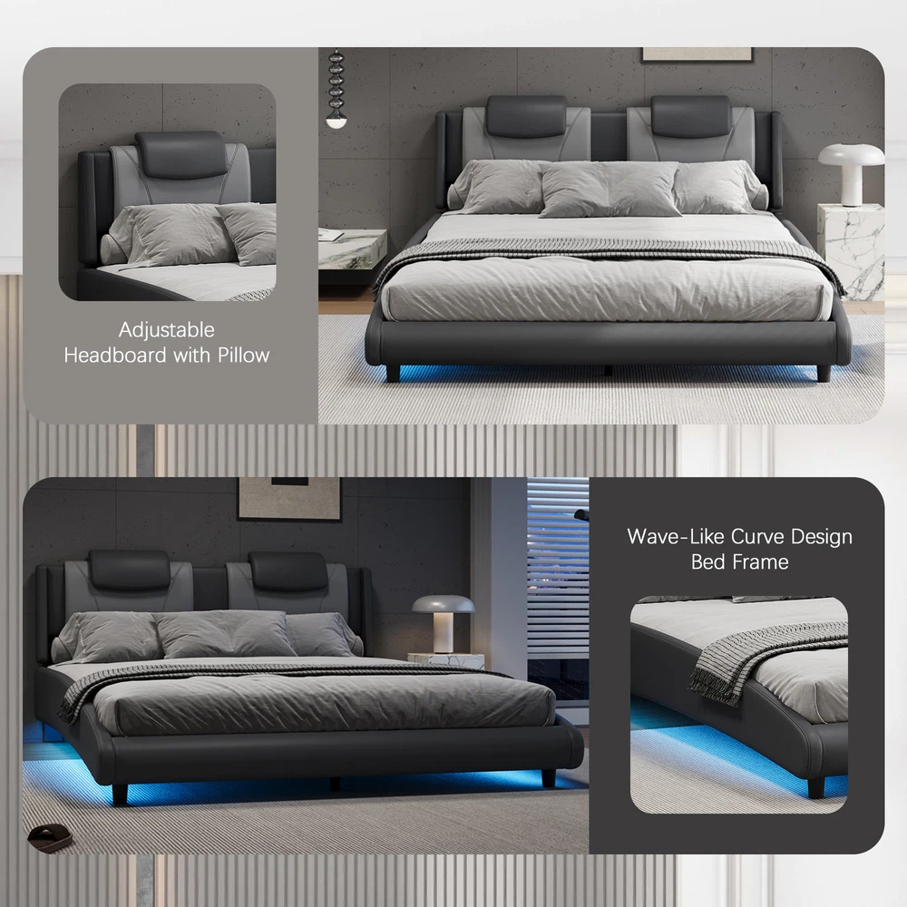 Brand Unbranded Item Length 83.75 Item Width 14.60 Item Height 7.30 Color Grey Frame Material Upholstered Type BED FRAME Compatible Mattress Size As described Diamond-ring-1 Simple life Modern Style Faux Leather Upholstered Platform Bed Frame with LED Light and Adjustable Headboard, No Box Spring Needed, Queen Size, Grey Waterproof and Easy to Clean: Our faux leather upholstery is designed to resist spills and stains, making it effortless to maintain. A simple wipe with a damp cloth is all it takes to keep your bed looking fresh and clean. Adjustable Headboard with Pillow:T he headboard is easily adjustable, allowing you to set it to your preferred height. Coupled with a soft pillow, it provides exceptional comfort for sitting up in bed, whether you're reading or enjoying a late-night movie. Wave-Like Curve Design:The innovative wave-like curve design of the bed frame adds a dynamic touch to your bedroom decor. This modern silhouette not only captures attention but also complements various interior styles, from minimalist to contemporary. Modern Style with a Tech Touch: Merging contemporary aesthetics with technological advancements, this bed is a perfect fit for modern living. Its sleek lines and elegant finish elevate your bedroom's overall look. Remote-Controlled LED Lights: Set the mood effortlessly with built-in LED lights. With a simple click of the remote, you can adjust the lighting to match your desired ambiance, whether for relaxation or celebration. Transform your bedroom into a haven of style and comfort with our exquisite Faux Leather Soft Bed. Crafted with a wave-like curve design, this bed not only serves as a functional sleeping space but also enhances the aesthetic appeal of your room. The adjustable headboard features a soft, supportive pillow that allows you to find your perfect position for reading, relaxing, or watching your favorite shows. Upholstered in high-quality faux leather, this bed is waterproof and easy to clean, ensuring it looks great for years to come. Moreover, the built-in LED lights, controllable via a convenient remote, add a touch of modern elegance, allowing you to create the perfect ambiance for any occasion. Experience the perfect combination of style, comfort, and technology with this stunning bed. Adjustable Headboard with Pillow The headboard is easily adjustable, allowing you to set it to your preferred height. Coupled with a plush, soft pillow, it provides exceptional comfort for sitting up in bed, whether you're reading or enjoying a late-night movie. Wave-Like Curve Design The innovative wave-like curve design of the bed frame adds a dynamic touch to your bedroom decor. This modern silhouette not only captures attention but also complements various interior styles, from minimalist to contemporary. Remote-Controlled LED Lights Set the mood effortlessly with built-in LED lights. With a simple click of the remote, you can adjust the lighting to match your desired ambiance, whether for relaxation or celebration. Waterproof and Easy to Clean Our faux leather upholstery is designed to resist spills and stains, making it effortless to maintain. A simple wipe with a damp cloth is all it takes to keep your bed looking fresh and clean. Queen Weight Capacity 600 LBS Material Wood + Metal + Faux Leather Assembly Required Yes Recommend Mattress 10~12" Item Specifics Brand Unbranded Item Length 83.75 Item Width 14.60 Item Height 7.30 Color Grey Frame Material Upholstered Type BED FRAME Compatible Mattress Size As described Payment Returns Diamond-ring-1 Simple life DESCRIPTION PAYMENT SHIPPING RETURN POLICY CONTACT US Shop Category Store Home Other Hot Item Delivery New List Item Help & Info Payment Policy Shipping Policy Return Policy FAQ About Us Modern Style Faux Leather Upholstered Platform Bed Frame with LED Light and Adjustable Headboard, No Box Spring Needed, Queen Size, Grey Waterproof and Easy to Clean: Our faux leather upholstery is designed to resist spills and stains, making it effortless to maintain. A simple wipe with a damp cloth is all it takes to keep your bed looking fresh and clean. Adjustable Headboard with Pillow:T he headboard is easily adjustable, allowing you to set it to your preferred height. Coupled with a soft pillow, it provides exceptional comfort for sitting up in bed, whether you're reading or enjoying a late-night movie. Wave-Like Curve Design:The innovative wave-like curve design of the bed frame adds a dynamic touch to your bedroom decor. This modern silhouette not only captures attention but also complements various interior styles, from minimalist to contemporary. Modern Style with a Tech Touch: Merging contemporary aesthetics with technological advancements, this bed is a perfect fit for modern living. Its sleek lines and elegant finish elevate your bedroom's overall look. Remote-Controlled LED Lights: Set the mood effortlessly with built-in LED lights. With a simple click of the remote, you can adjust the lighting to match your desired ambiance, whether for relaxation or celebration. Transform your bedroom into a haven of style and comfort with our exquisite Faux Leather Soft Bed. Crafted with a wave-like curve design, this bed not only serves as a functional sleeping space but also enhances the aesthetic appeal of your room. The adjustable headboard features a soft, supportive pillow that allows you to find your perfect position for reading, relaxing, or watching your favorite shows. Upholstered in high-quality faux leather, this bed is waterproof and easy to clean, ensuring it looks great for years to come. Moreover, the built-in LED lights, controllable via a convenient remote, add a touch of modern elegance, allowing you to create the perfect ambiance for any occasion. Experience the perfect combination of style, comfort, and technology with this stunning bed. Adjustable Headboard with Pillow The headboard is easily adjustable, allowing you to set it to your preferred height. Coupled with a plush, soft pillow, 