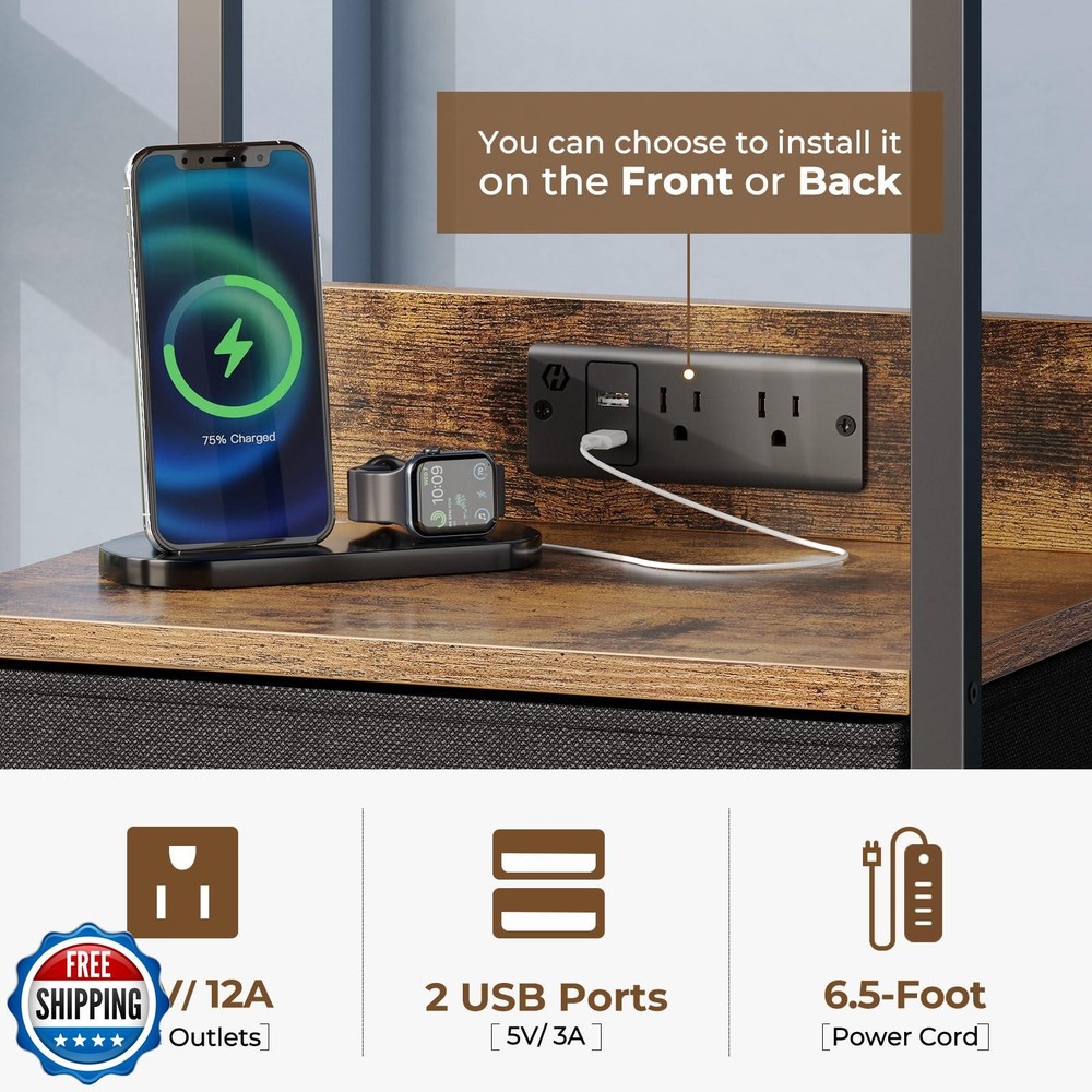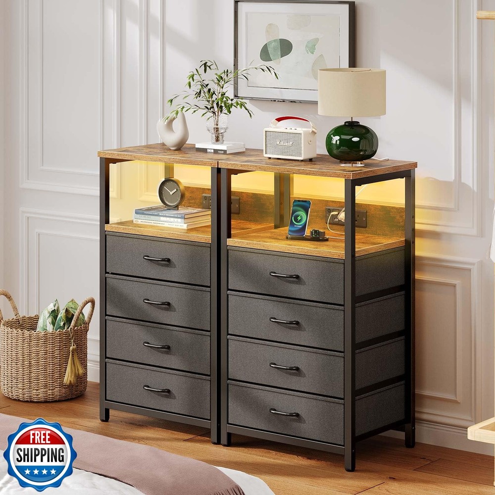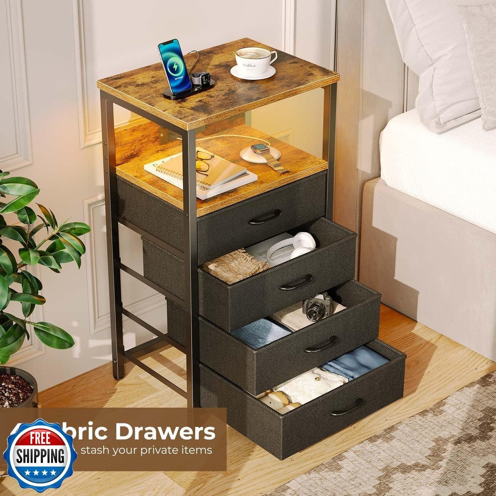 Seventable Night Stand with Charging Station, Tall Nightstand with 4 Fabric Storage Drawers, Side Table with LED Light for Bedroom, Entryway, Rustic Brown Features 4 Fabric Storage Drawers Night Stand: This versatile night stand boasts 4 vertical fabric drawers, offering generous storage capacity to keep clothes, books, gadgets, and daily essentials neatly tucked away. Measuring just 11.81"D x 15.75"W x 28.19"H, it fits seamlessly into small space—no need to sacrifice style for space, as it delivers both smart organization and a sleek footprint Nightstand with Charging Station: Equipped with 2 USB ports and 2 AC outlets, this nightstand allows you to easily charge your smartphone, headphones, smartwatches, and other electronic devices right by your bedside. The thoughtfully positioned outlets ensure your devices are always within reach, making it perfect for nighttime use Easy to Assemble Side Table: Assembling this side table is a stress-free breeze. Thanks to our easy-to-follow, step-by-step instructions, precision-numbered components, and a full set of included tools, even first-time assemblers can master it effortlessly. In just a little time and effort, you’ll unlock a sleek, functional side table for your bedroom or living room—no hassle, just satisfaction RGB LED Bedside Table: This bedside table features a built-in RGB LED strip to add modern style to your bedroom. Pick from 20 vibrant colors, 21 dynamic modes, and 8 brightness levels to set the perfect vibe. The remote control makes customizing lighting for any occasion quick and easy—elevating your room’s atmosphere effortlessly Sturdy & Durable End Table: Stylish yet durable, this end table uses premium engineered wood and a strong metal frame for long-term use. Tabletop holds up to 55 lbs—ideal for lamps, books, or heavy items. Fabric drawers (11 lbs capacity each) reliably store essentials Shipping Free & Fast Shipping: We offer free shipping to most of the USA with a normal delivery time of 3-7 days. However, due to the current situation, additional delivery time (up to 3 weeks) may be required for some items. Alternative Carriers: We may use alternative carriers (e.g., USPS, FedEx, UPS) to ensure your package arrives safely and on time. Due to the use of multiple carriers, we are unable to provide a tracking number automatically. Handling Time: Orders are processed and shipped within 1-2 business days of receiving cleared payment. Shipping Restrictions: Shipping to Alaska, Hawaii, Puerto Rico, Guam, and other US territories may incur shipping charges or delivery restrictions. Please contact us before ordering, or your order can be refunded/cancelled. State Restrictions: Certain items may not be shipped to California due to state regulations. Contact for Tracking Updates: If you require tracking updates or have any concerns about the delivery of your order, please feel free to contact us, and we will be happy to assist you. Return Policy 30-Day Hassle-Free Returns: If you are not completely satisfied with your purchase, you can return the item for free within 30 days of receiving it for a full refund or exchange. Easy Return Process: Contact us, and we will provide you with a prepaid return shipping label and detailed instructions. No Restocking Fee: There are no restocking fees for returns. However, the buyer is responsible for return shipping costs if the return is not due to a seller"s error. Refund Processing: Refunds will be processed within 1 business day of receiving the returned item in its original condition. Feedback Your feedback is extremely important to us. We strive to provide the best products and customer service possible. If you are satisfied with your purchase, please take a moment to leave us a positive review. If you have any concerns or issues with your order, please contact us before leaving negative feedback. We are committed to resolving any problems and ensuring your satisfaction. Contact Us If you have any questions or concerns, please feel free to reach out to our customer support team. You can contact us through the eBay messaging system. We are available Monday to Friday, 9:00 am to 5:00 pm EST, and we will do our best to respond to your inquiry within 24 hours. Thank you for supporting our small family business!