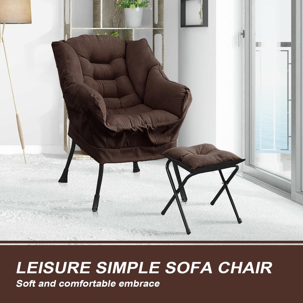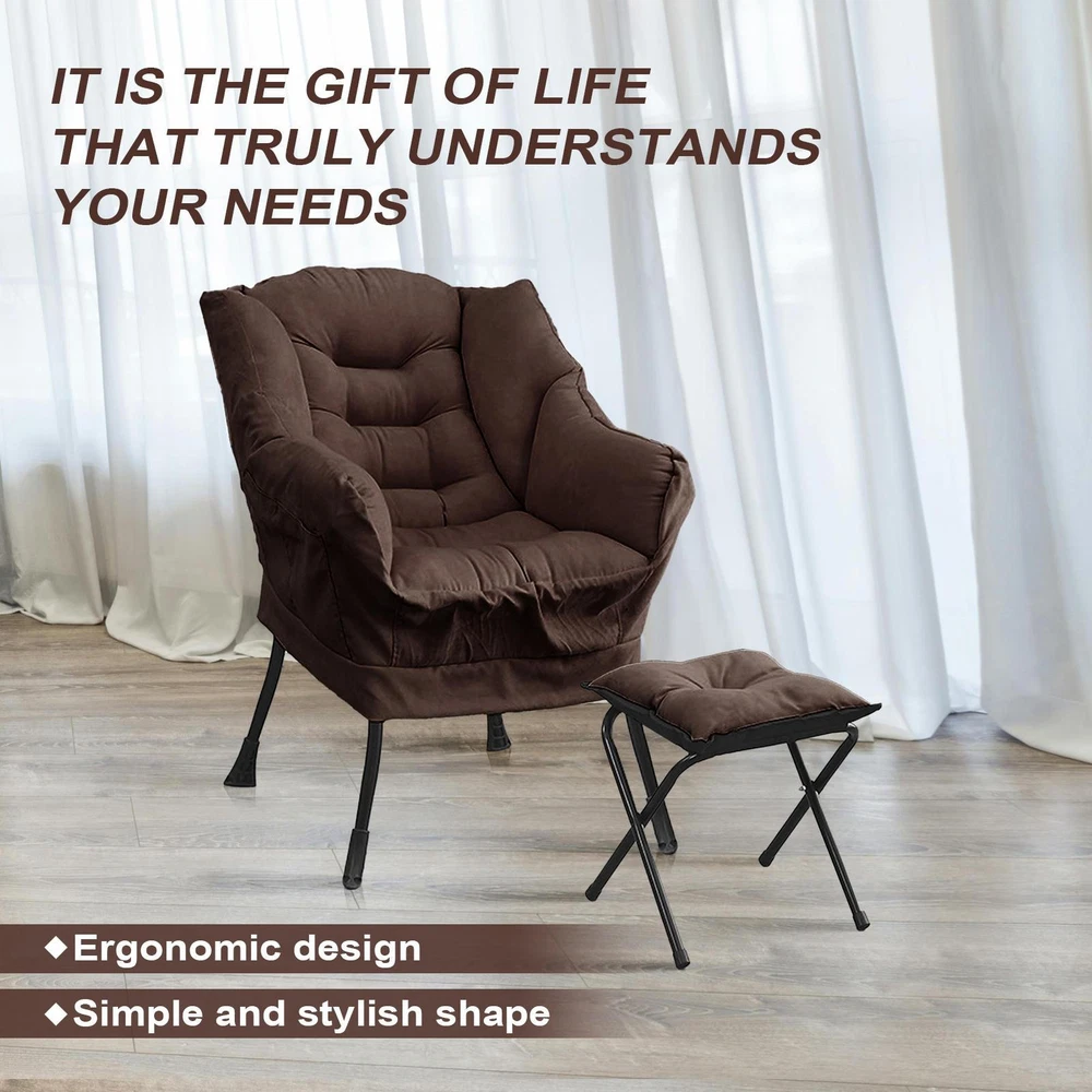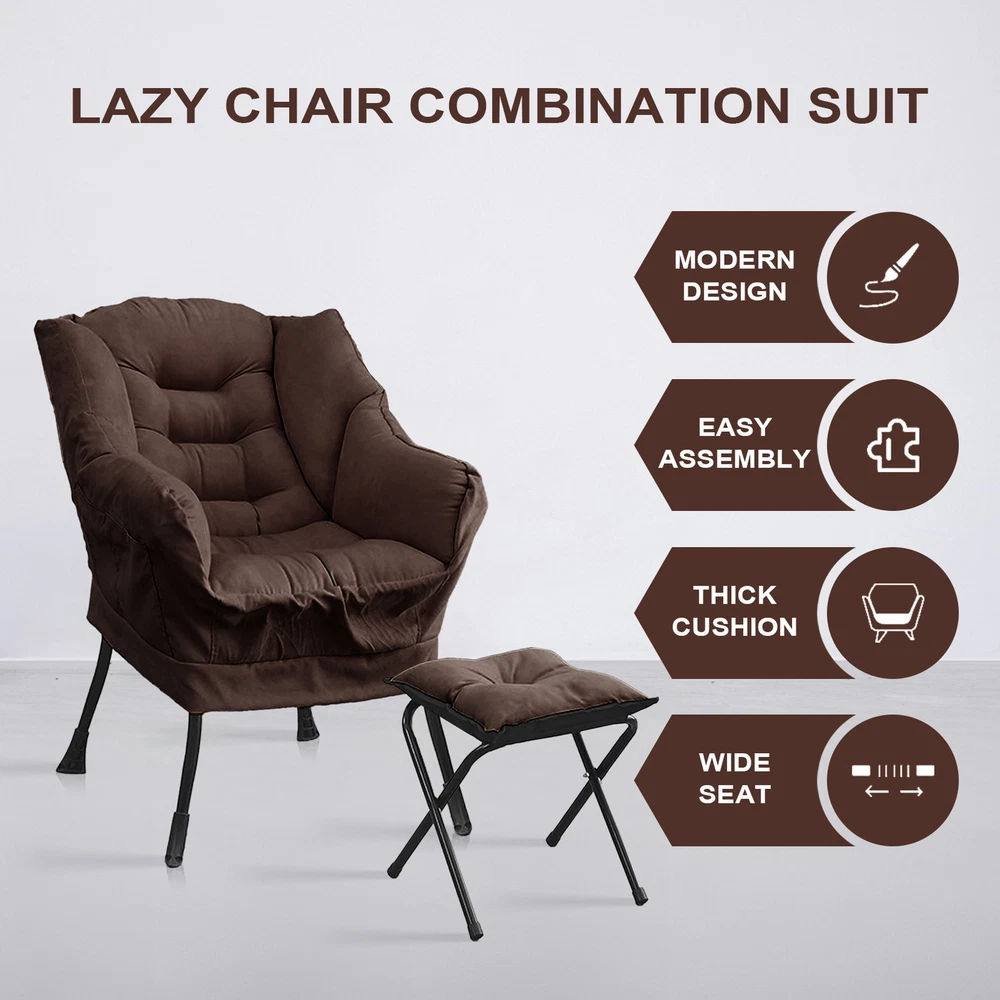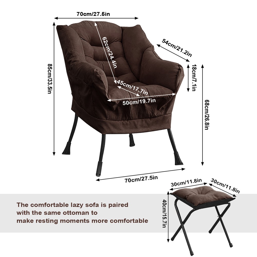 Modern Accent Upholstered Lazy Chair With Ottoman Sofa Chair Foldable Footres Product Description Bullet Points: Ideal Comfort Seating: Get lost in relaxation with this lazy chair and ottoman set. The extra-large size and thickened design offer a spacious and comfortable seating option that can easily accommodate any need, whether it's a nap or reading. Wear-resistant Design: The excellent, scratch-resistant fabric provides a unique texture and a sense of luxury. The soft and delicate touch makes seating and lying down a pleasure, while the wear-resistant material ensures durability and long-lasting comfort Comfortable Chair Back: The chair back adopts an ergonomic design that fits the back curve and provides ample support, allowing for a comfortable and relaxed sitting posture. The ottoman provides added comfort, making it the ideal resting mark after a long day Foldable Footrest: Equipped with a sturdy and foldable ottoman that harmonizes with the chair, this lazy chair provides a significantly improved experience of comfort. The non-slip foot design not only ensures stable support but also assures safety for relaxation Broad Applicability: Whether you want to lounge in a spacious living room or create a cozy corner in your bedroom or balcony, our lazy chair with ottoman provides ideal comfort and indulgent relaxation, enhancing any area with ease Introducing our comfy chair with ottoman! Our chair provides all-round support and wrapping for the body, ensuring you maintain a comfortable sitting posture. The wear-resistant material ensures long-lasting use, while the stable base makes it perfect for any spacious living room. Specification: Product name: Lazy chair with ottoman Material: Suedes Color: brown Style: Thickened model with footrest Product weight: about 5.8kg/12.8lbs Product size: about 70x61x88cm/27.56x24.02x34.65 inches Packing size: about 68x17x78cm/26.77x6.69x30.71 inches Packing weight: about 7.4kg/16.3lbs Applicable scenes: bedroom, living room, balcony, etc. Packing List: 1* Chair 1* Footstool 1 set of mounting screws Notes: 1. Due to different lighting and screen settings, the item color may be slightly different from the picture. 2. Due to different manual measurements, please allow a 1-2cm difference in size. Payment 1.PayPal is a preferred Payment method. if you Do NoT have a Paypal account, please go to www.paypal.com register. 2.You can make a Credit payment via Paypal.Paypal will let you use MasterCard,Visa to pay. 3.Payment should be completed within 3 days after auction closed, or unpaid dispute will be filed for an closing auction.An unpaid case will be filled after 4 days. Delivery details 1. We ship to many countries. 2. Delivery Time: Ship from China via Speedpak to US (takes 8-12 days) Ship from China via others shipping method to other countries (takes 15-60 days) 3. If you want to choose another address, please leave us a message on ebay.Please check your shipping address carefully before checkout,it can't be changed if order completed. Seriously promise:Refund or resend will be offered if item still not arrive in 7-10 business days. Just send us an email,we will give you a satisfied solution as soon as possible. Return policy 1.All item comes with Basic 3 Months Sellers Warranty, if item defective in 3 months,We will offer replacement without extra charger (including shipping fee) After we receive the defective item. If item Defective after 3 Month, Buyers can still send it back, We will contact suppliers or Manufactory for Warranty. Buyers Might Need pay the Shipping fee For resend the replaced item. 2.If item DOA(Dead of Arrival), Buyers can return it in 30 Days, we will replace it with new item after we receive DOA item. Please Contact us Before you sent the item back. 3.All item can be returned for exchange only. The buyer has responsibility for all return shipping including DOA or defective return. About Feedback When you receive the item and satisfied with the product, please leave positive feedback and 5 scores DSR. We will leave a 5 Scores DSR feedback for you. If, for any reason you are not satisfied with your purchase, please contact via Ebay Message and we will do our best to resolve it. Please don't leave neutral or negative feedback without any communition with .