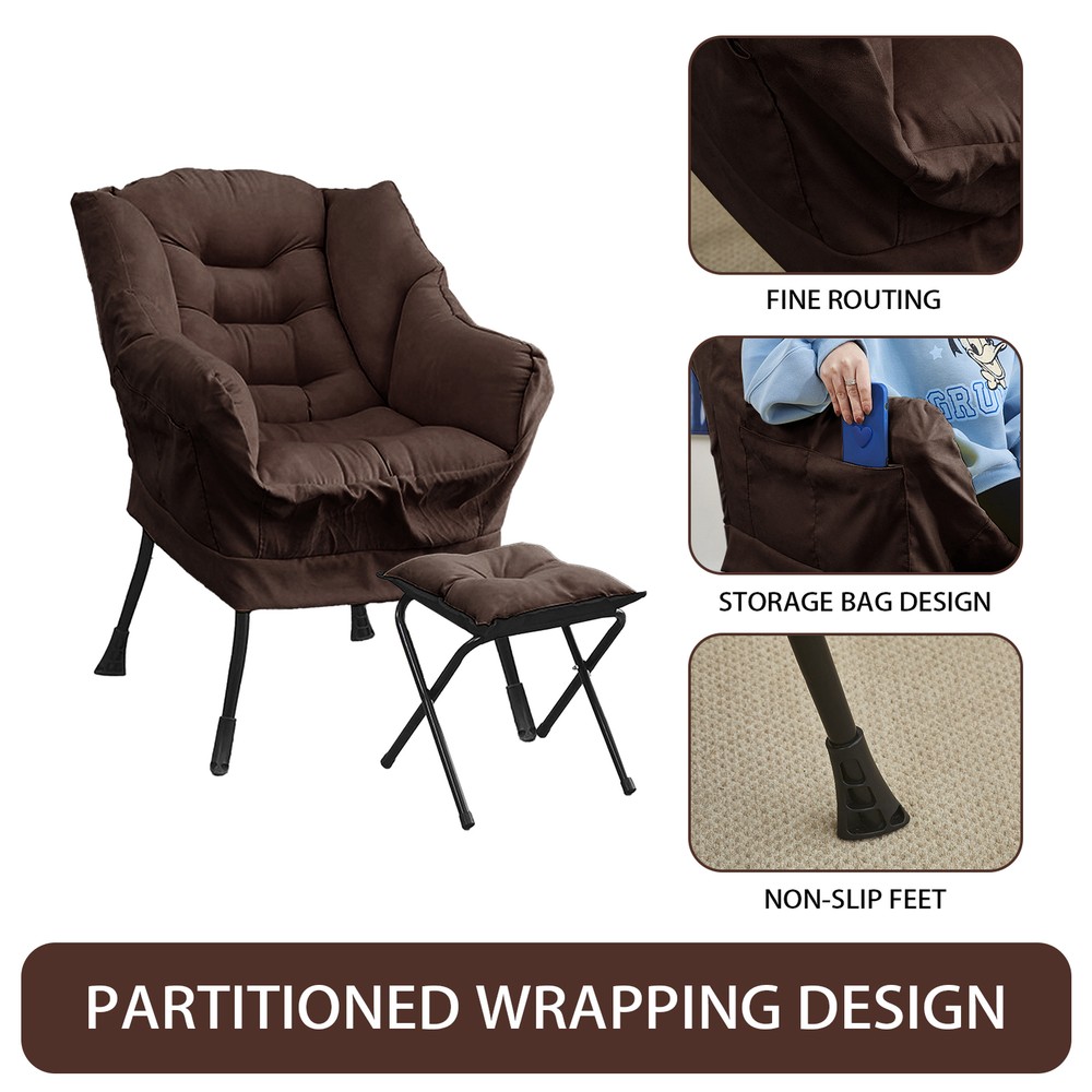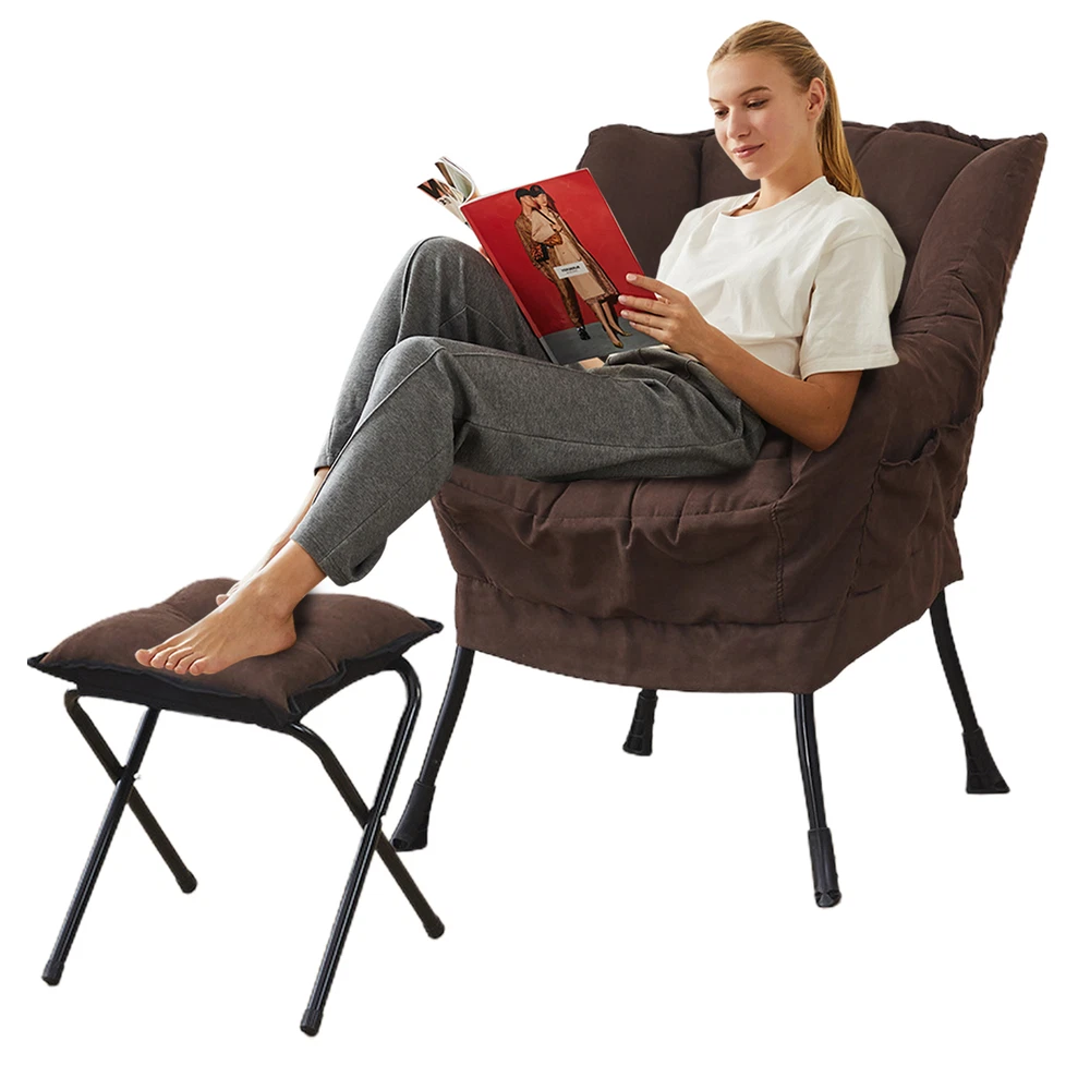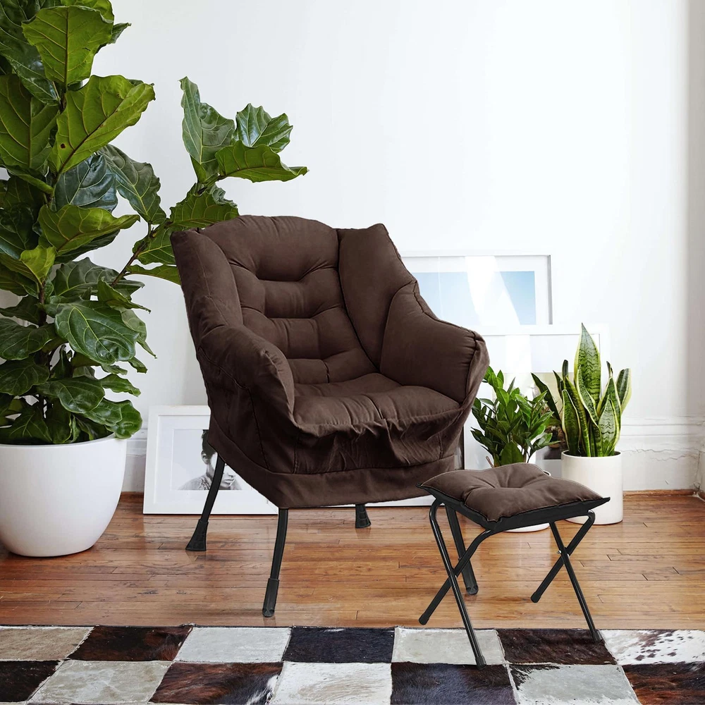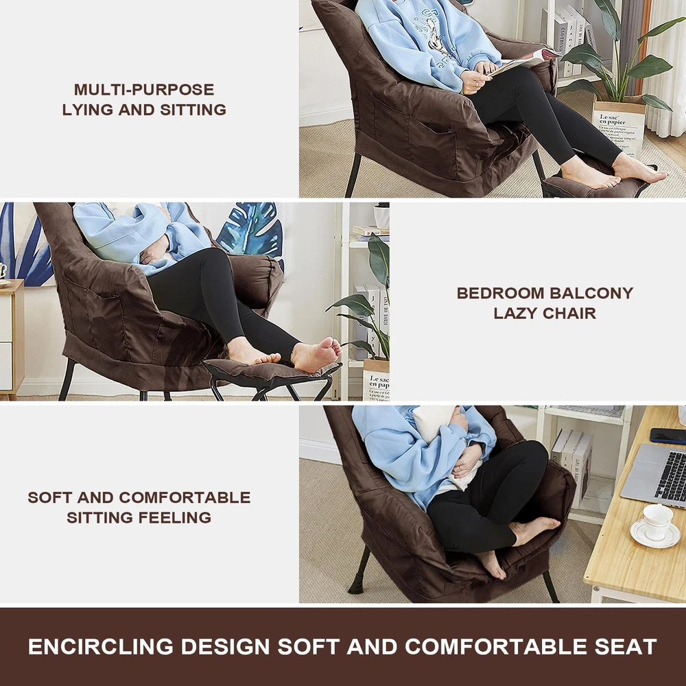 Modern Accent Upholstered Lazy Chair With Ottoman Sofa Chair Foldable Footres Product Description Bullet Points: Ideal Comfort Seating: Get lost in relaxation with this lazy chair and ottoman set. The extra-large size and thickened design offer a spacious and comfortable seating option that can easily accommodate any need, whether it's a nap or reading. Wear-resistant Design: The excellent, scratch-resistant fabric provides a unique texture and a sense of luxury. The soft and delicate touch makes seating and lying down a pleasure, while the wear-resistant material ensures durability and long-lasting comfort Comfortable Chair Back: The chair back adopts an ergonomic design that fits the back curve and provides ample support, allowing for a comfortable and relaxed sitting posture. The ottoman provides added comfort, making it the ideal resting mark after a long day Foldable Footrest: Equipped with a sturdy and foldable ottoman that harmonizes with the chair, this lazy chair provides a significantly improved experience of comfort. The non-slip foot design not only ensures stable support but also assures safety for relaxation Broad Applicability: Whether you want to lounge in a spacious living room or create a cozy corner in your bedroom or balcony, our lazy chair with ottoman provides ideal comfort and indulgent relaxation, enhancing any area with ease Introducing our comfy chair with ottoman! Our chair provides all-round support and wrapping for the body, ensuring you maintain a comfortable sitting posture. The wear-resistant material ensures long-lasting use, while the stable base makes it perfect for any spacious living room. Specification: Product name: Lazy chair with ottoman Material: Suedes Color: brown Style: Thickened model with footrest Product weight: about 5.8kg/12.8lbs Product size: about 70x61x88cm/27.56x24.02x34.65 inches Packing size: about 68x17x78cm/26.77x6.69x30.71 inches Packing weight: about 7.4kg/16.3lbs Applicable scenes: bedroom, living room, balcony, etc. Packing List: 1* Chair 1* Footstool 1 set of mounting screws Notes: 1. Due to different lighting and screen settings, the item color may be slightly different from the picture. 2. Due to different manual measurements, please allow a 1-2cm difference in size. Payment 1.PayPal is a preferred Payment method. if you Do NoT have a Paypal account, please go to www.paypal.com register. 2.You can make a Credit payment via Paypal.Paypal will let you use MasterCard,Visa to pay. 3.Payment should be completed within 3 days after auction closed, or unpaid dispute will be filed for an closing auction.An unpaid case will be filled after 4 days. Delivery details 1. We ship to many countries. 2. Delivery Time: Ship from China via Speedpak to US (takes 8-12 days) Ship from China via others shipping method to other countries (takes 15-60 days) 3. If you want to choose another address, please leave us a message on ebay.Please check your shipping address carefully before checkout,it can't be changed if order completed. Seriously promise:Refund or resend will be offered if item still not arrive in 7-10 business days. Just send us an email,we will give you a satisfied solution as soon as possible. Return policy 1.All item comes with Basic 3 Months Sellers Warranty, if item defective in 3 months,We will offer replacement without extra charger (including shipping fee) After we receive the defective item. If item Defective after 3 Month, Buyers can still send it back, We will contact suppliers or Manufactory for Warranty. Buyers Might Need pay the Shipping fee For resend the replaced item. 2.If item DOA(Dead of Arrival), Buyers can return it in 30 Days, we will replace it with new item after we receive DOA item. Please Contact us Before you sent the item back. 3.All item can be returned for exchange only. The buyer has responsibility for all return shipping including DOA or defective return. About Feedback When you receive the item and satisfied with the product, please leave positive feedback and 5 scores DSR. We will leave a 5 Scores DSR feedback for you. If, for any reason you are not satisfied with your purchase, please contact via Ebay Message and we will do our best to resolve it. Please don't leave neutral or negative feedback without any communition with .