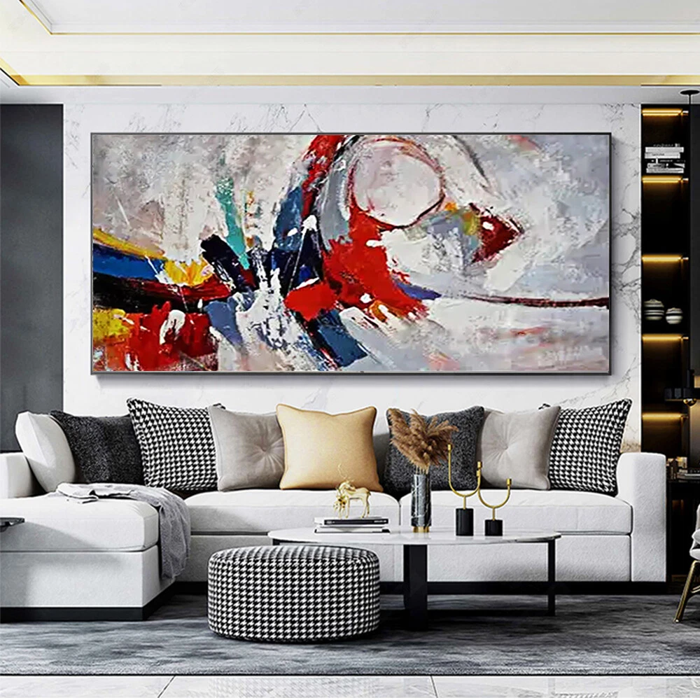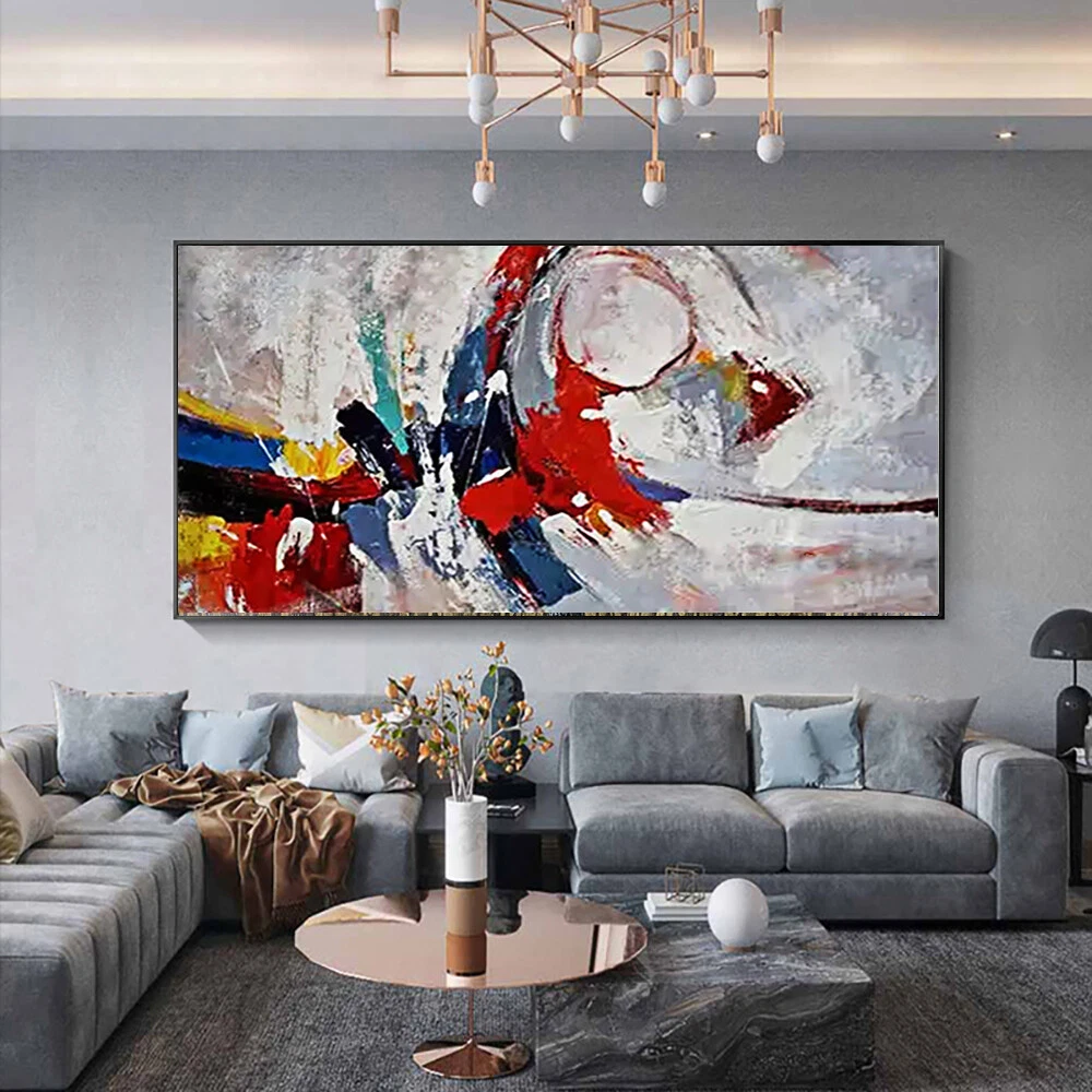 Modern Wall Art Abstract Colorful Thick Oil Painting Red Handpainted On Canvas