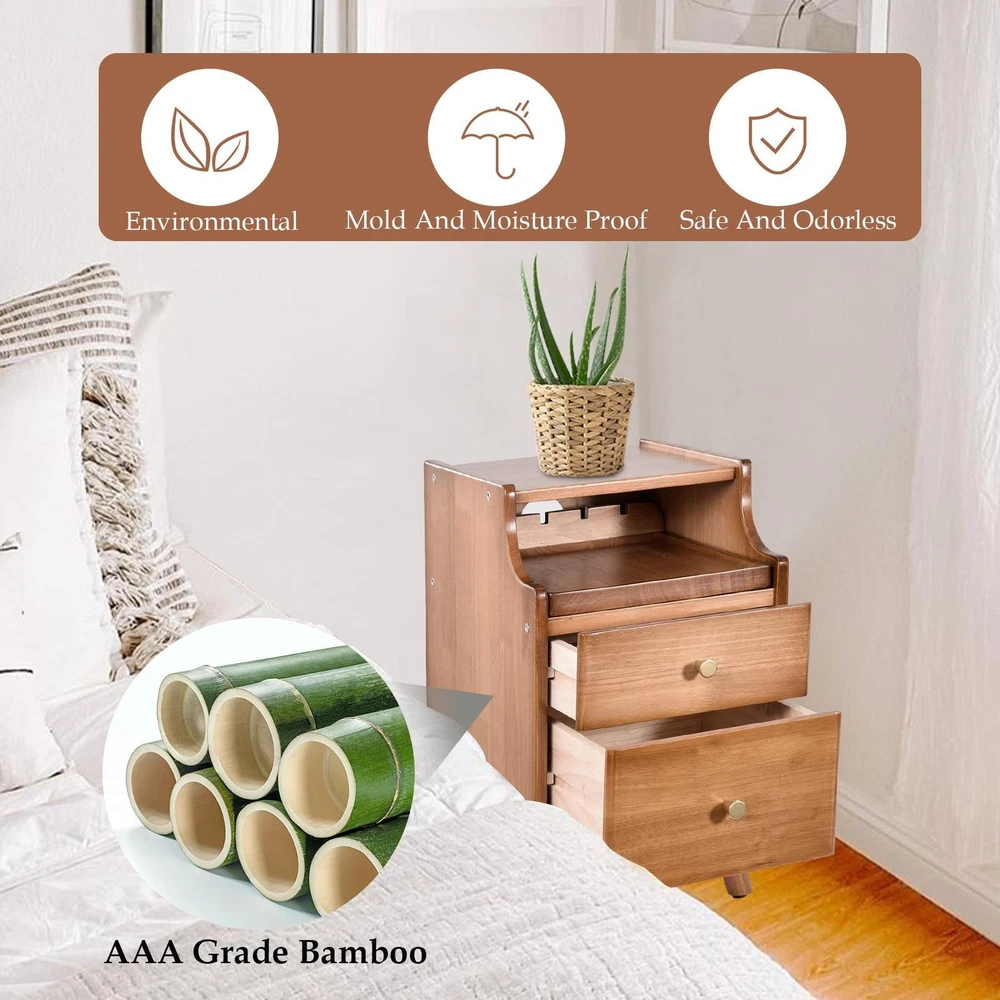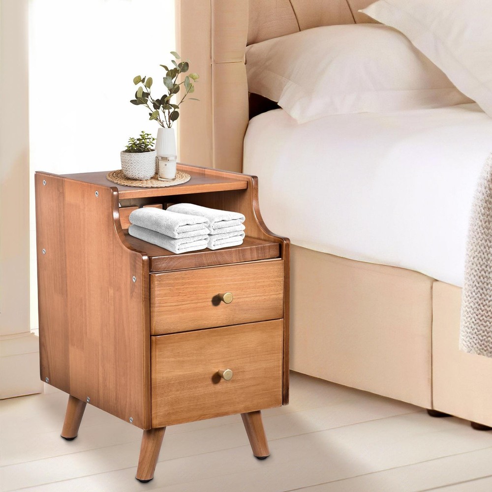 Modern Nightstand Wood Bedside Table 2 Drawers End Side Table For Bedroom