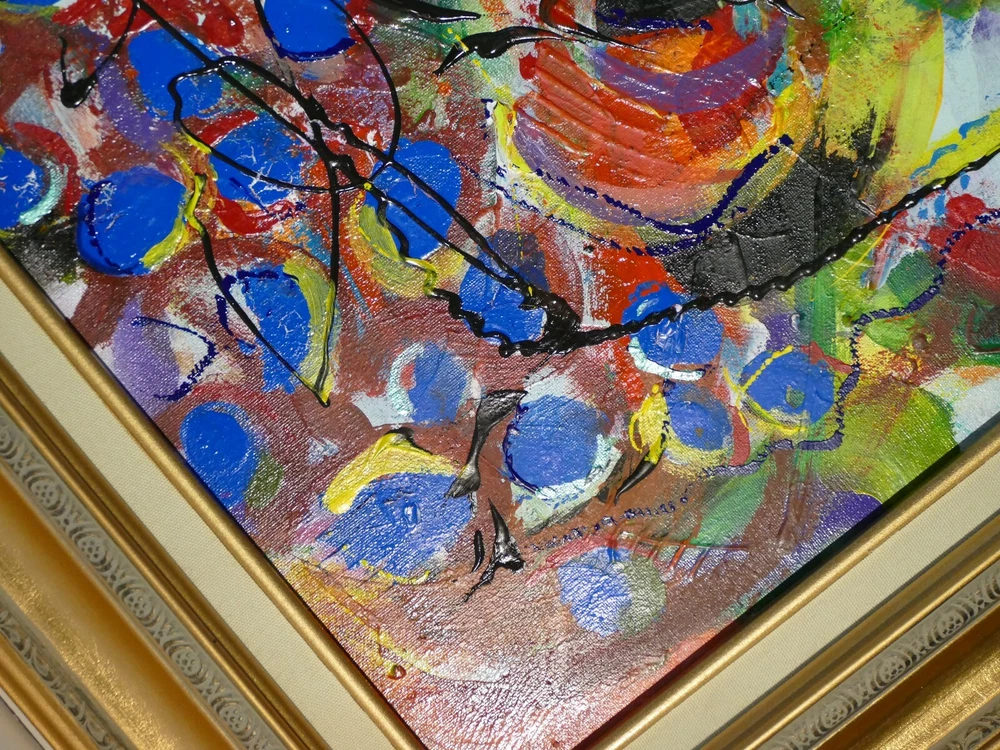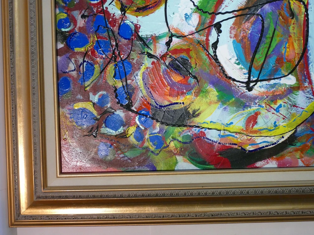 Modern art abstract acrylic painted gallery finish with frame gold ready to hang