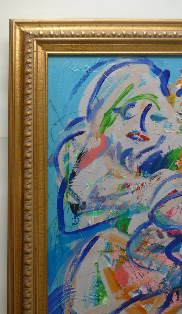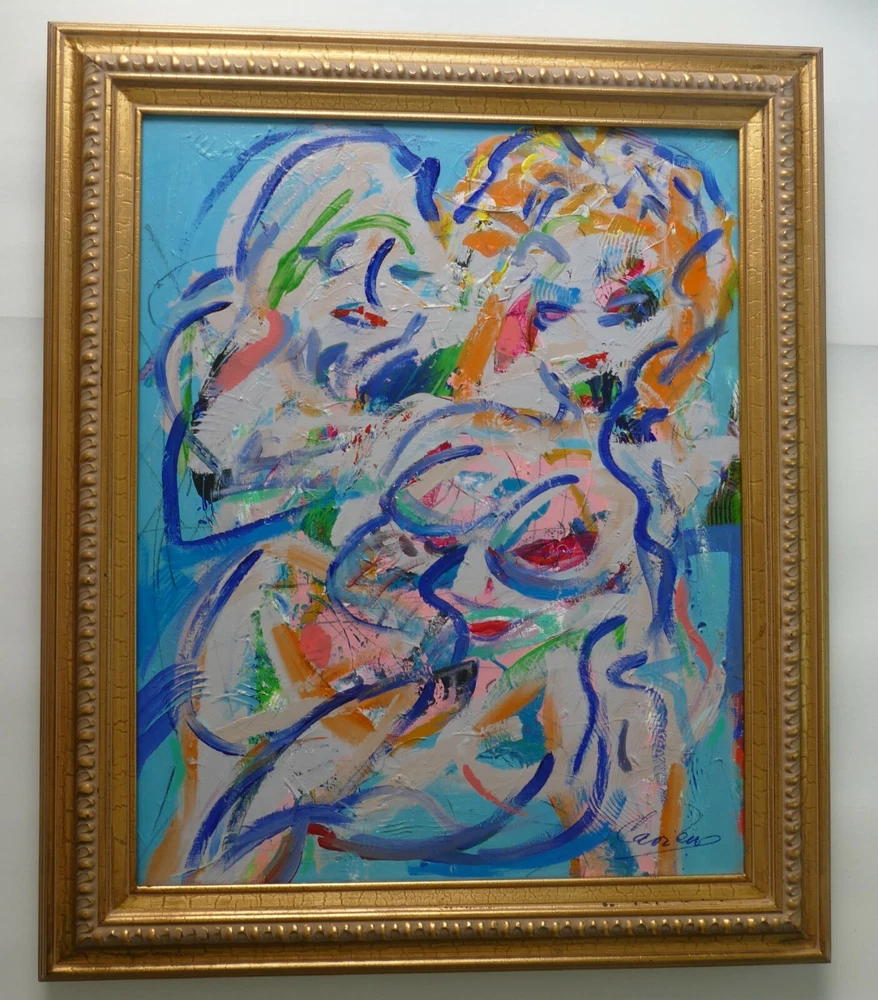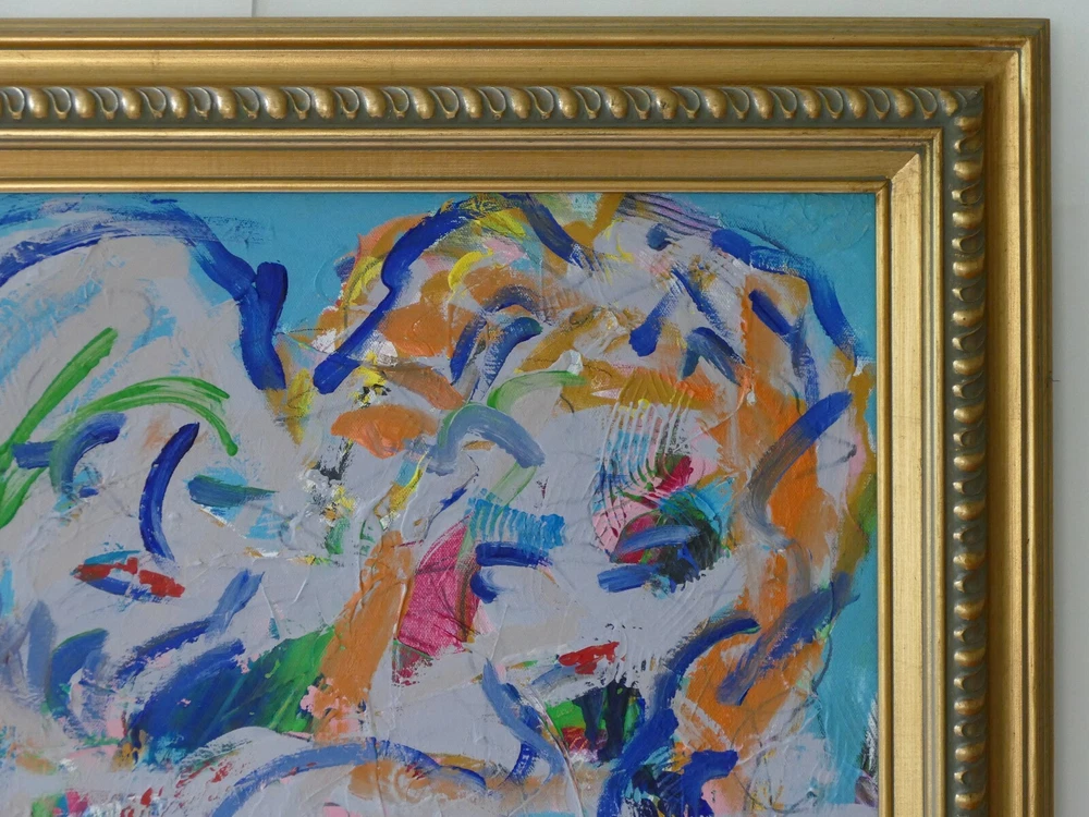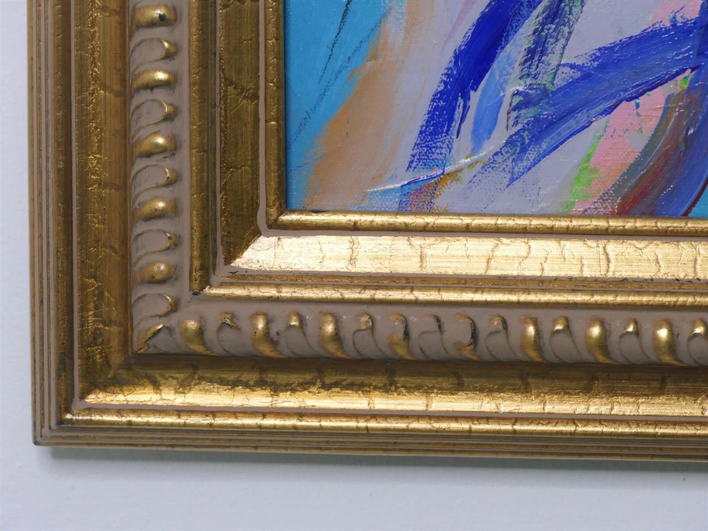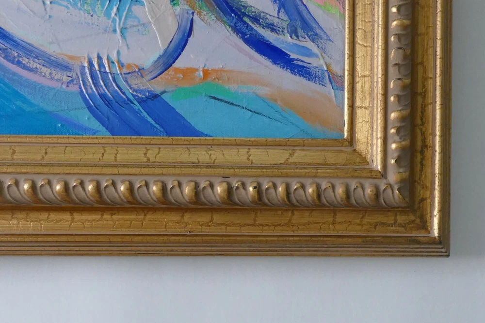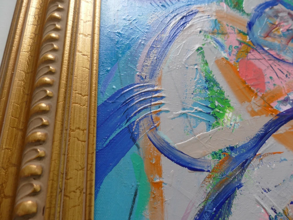 Modern art abstract acrylic painted gallery finish with frame gold ready to hang