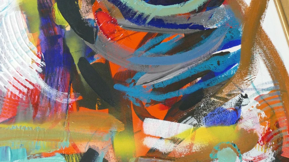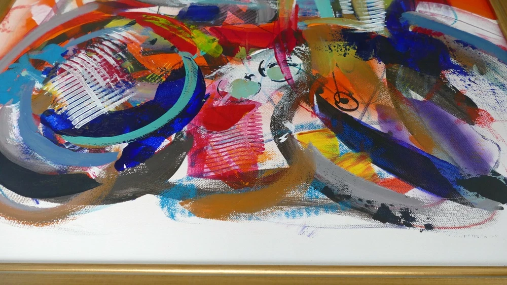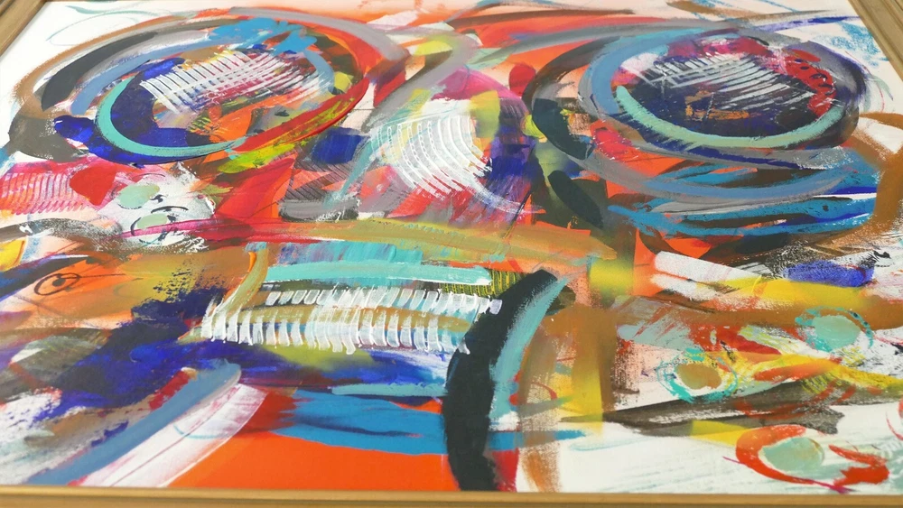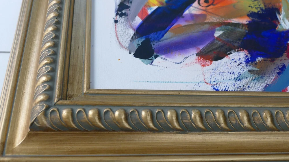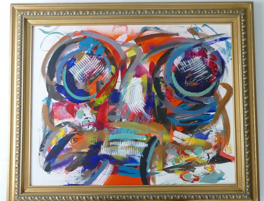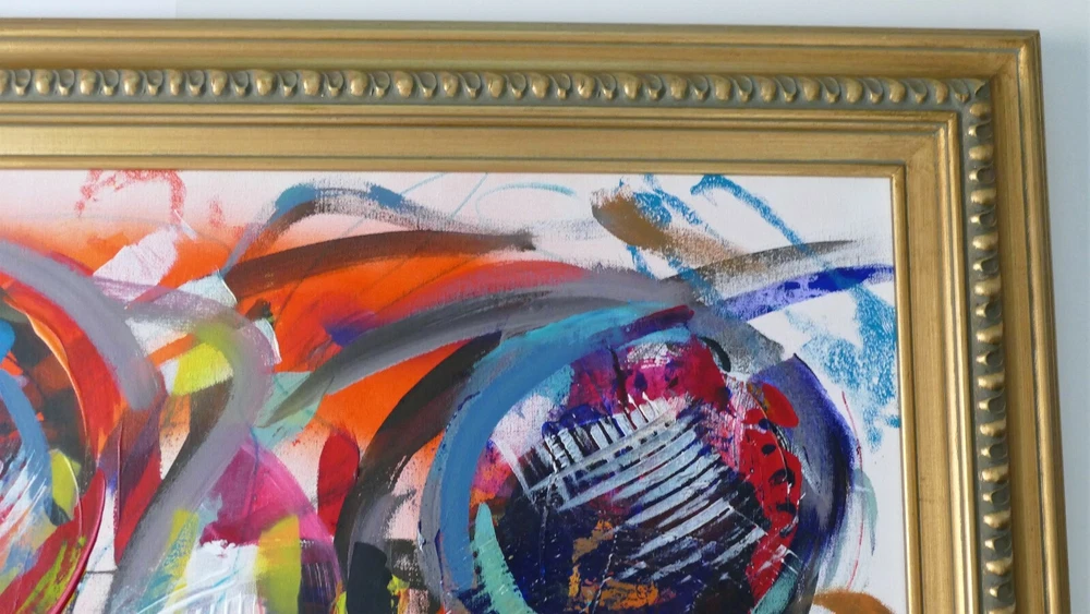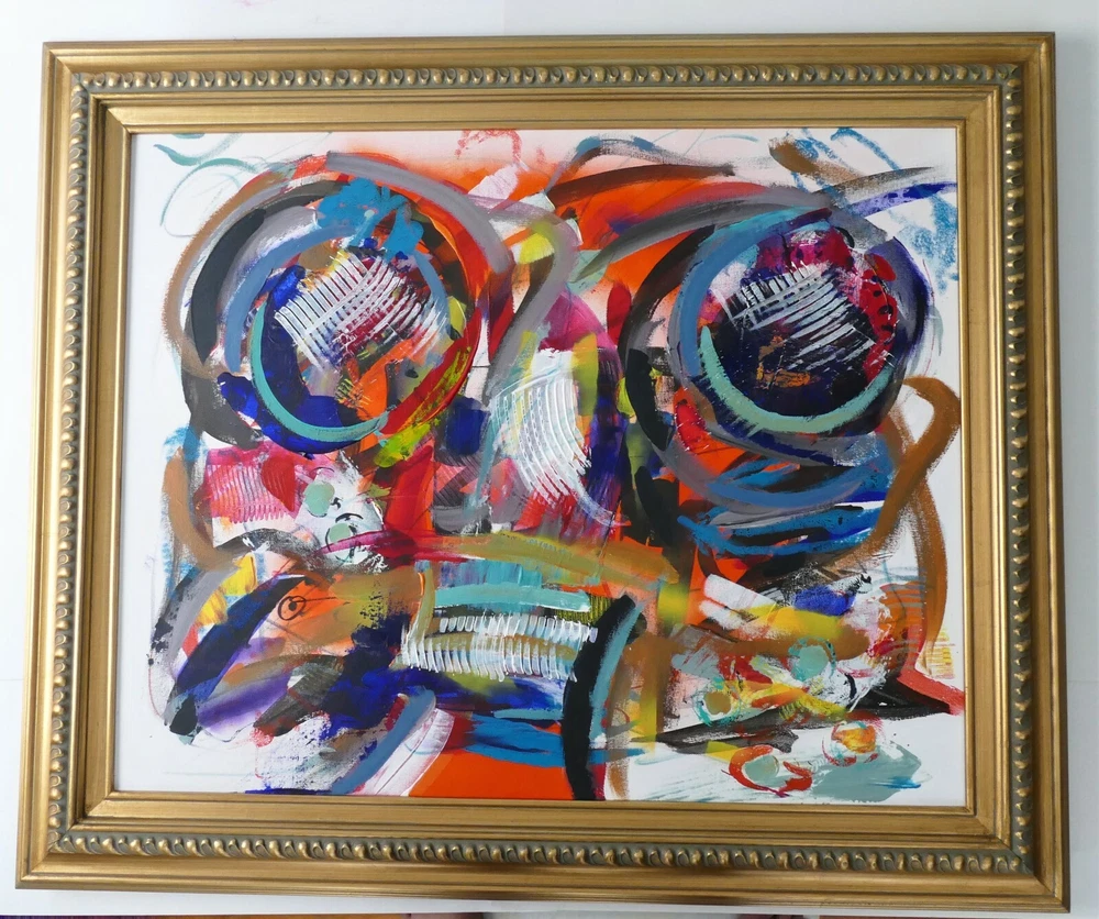 Original acrylic painting modern abstract art signed. Gold frame size 31"X37" Canvas size: 24"x30".