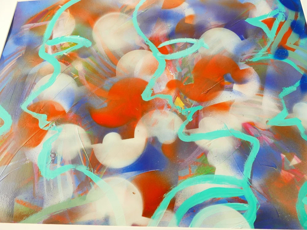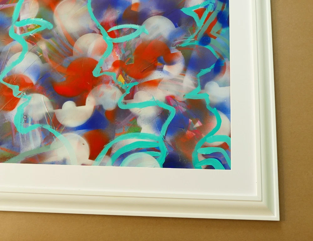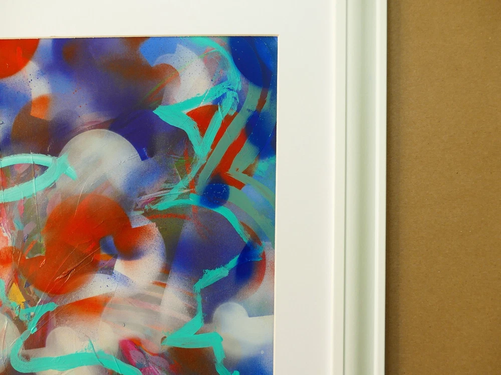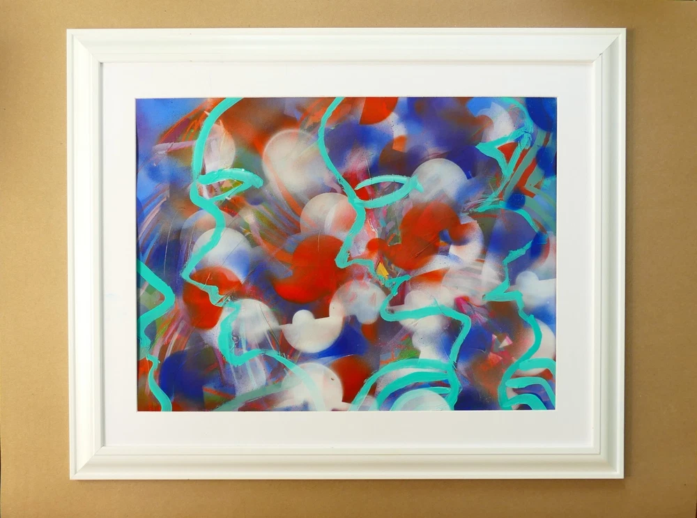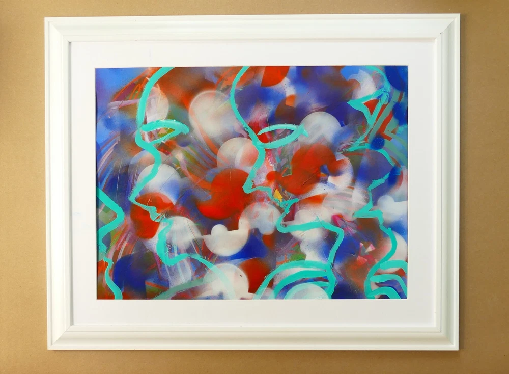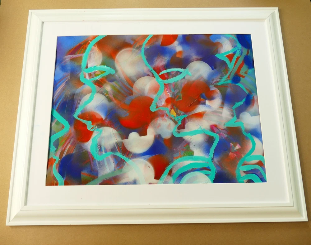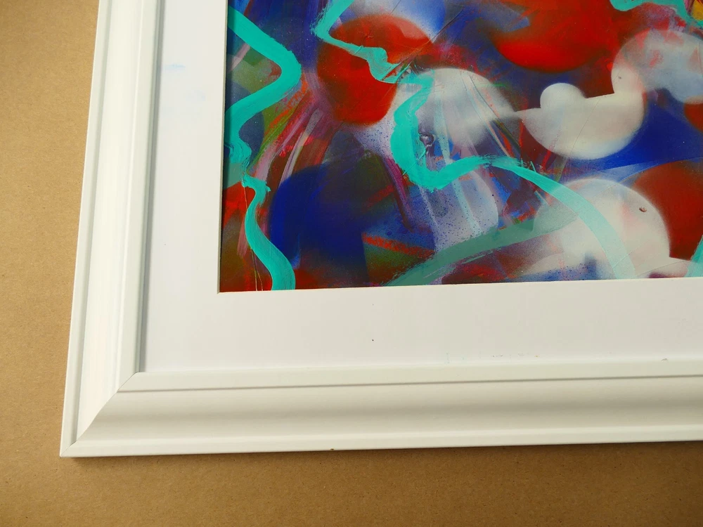 Original acrylic painting modern abstract art signed. Gold frame size 24"X32" Paint surface heavy paper size: 24"x28".