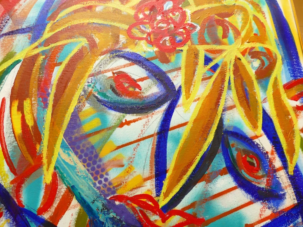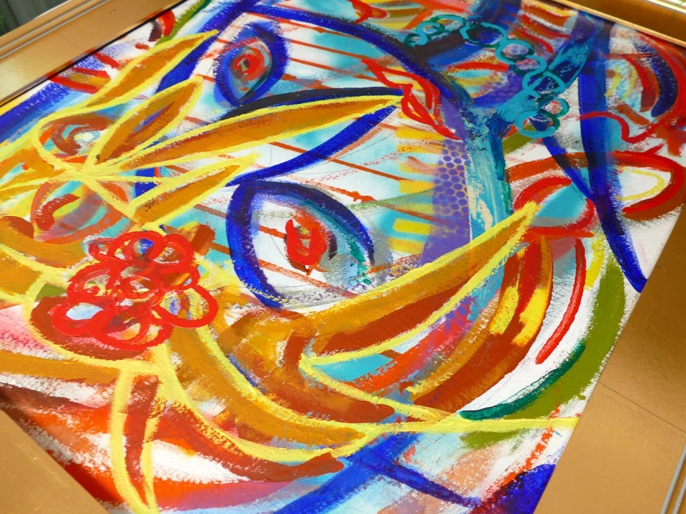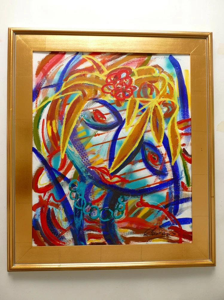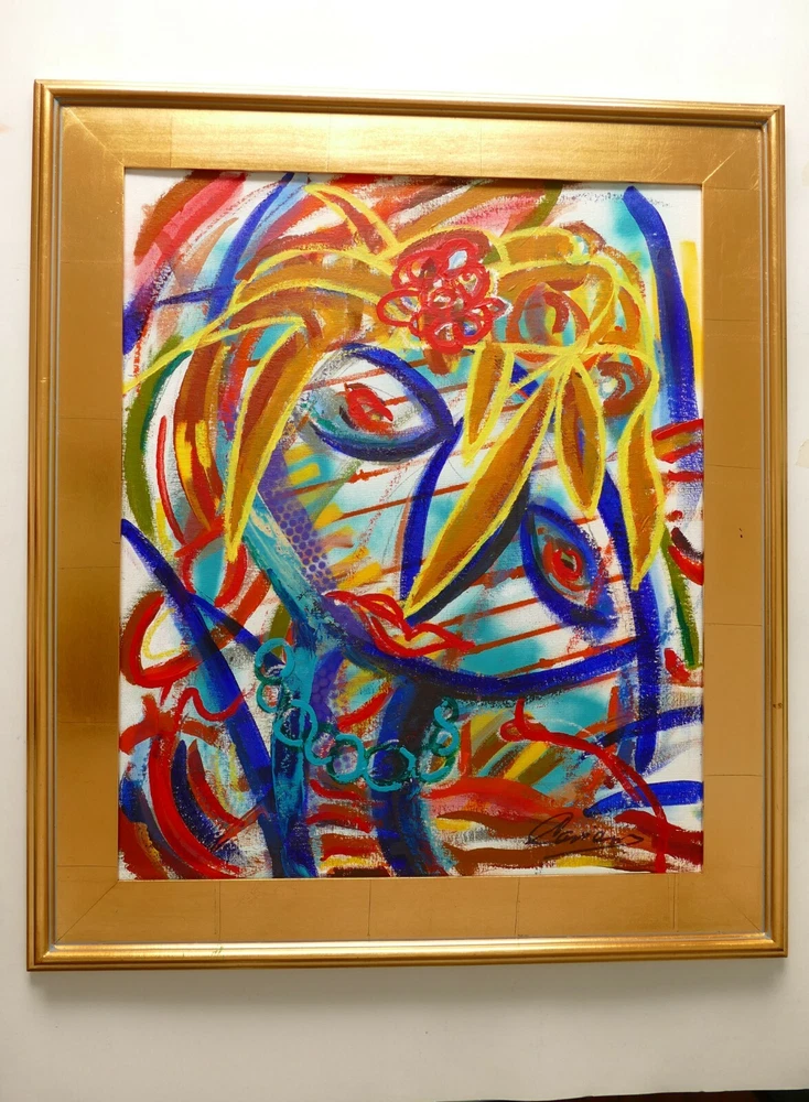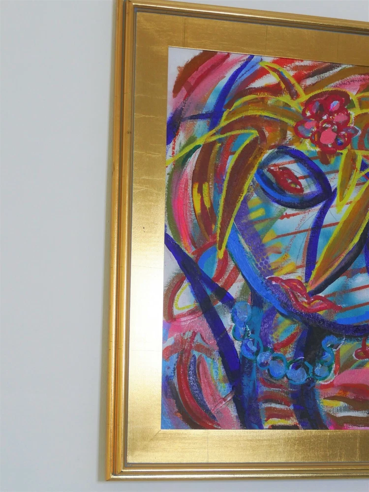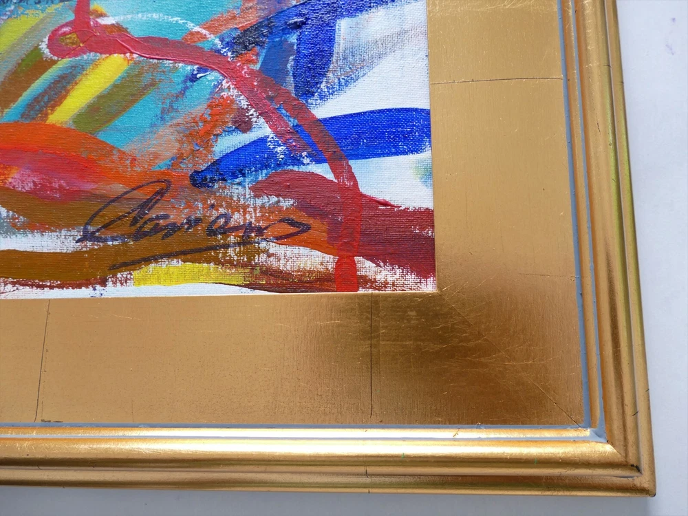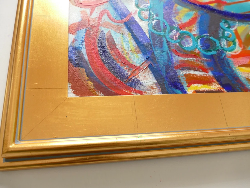 Original acrylic painting modern abstract art signed. Gold frame size 30"X26" Paint surface canvas panel size: 20"x24".