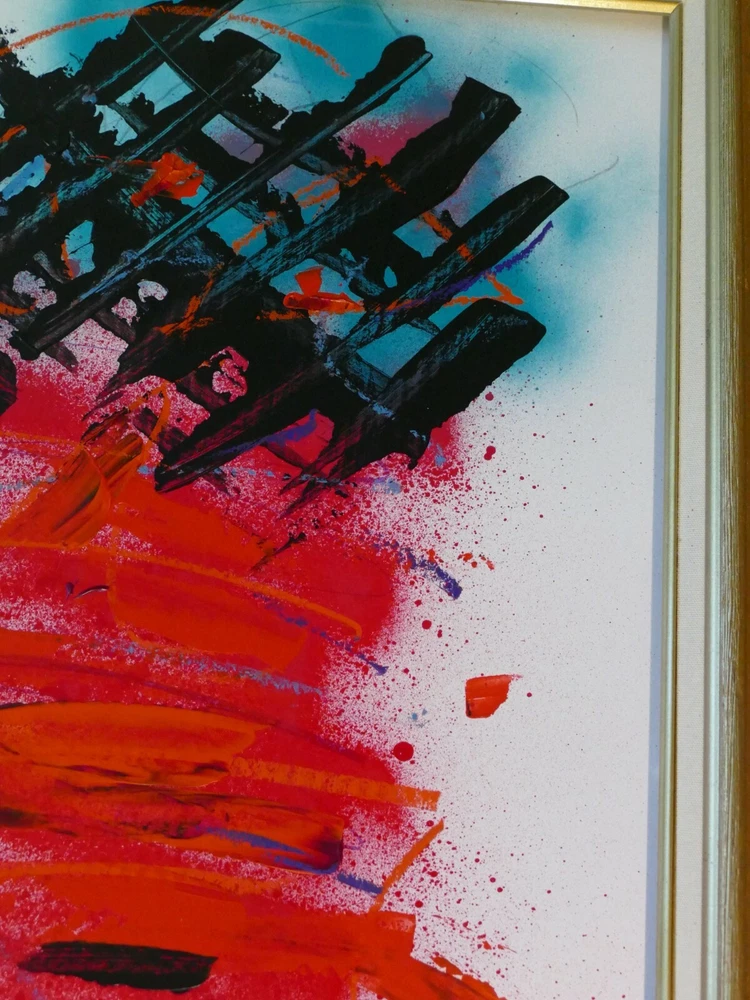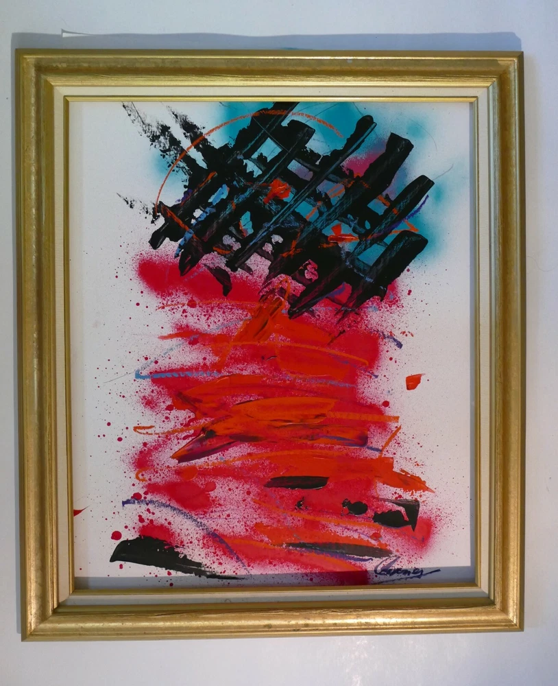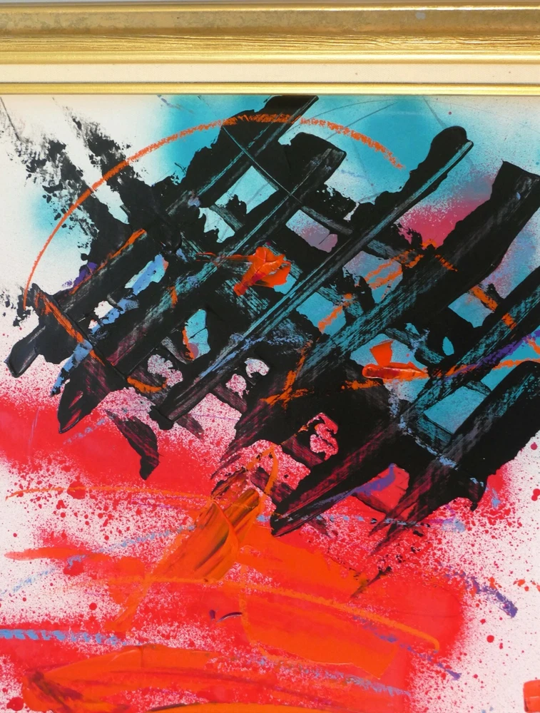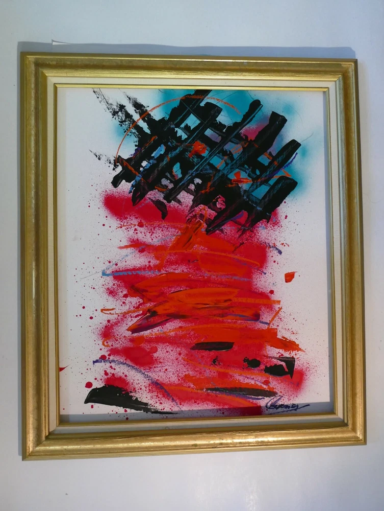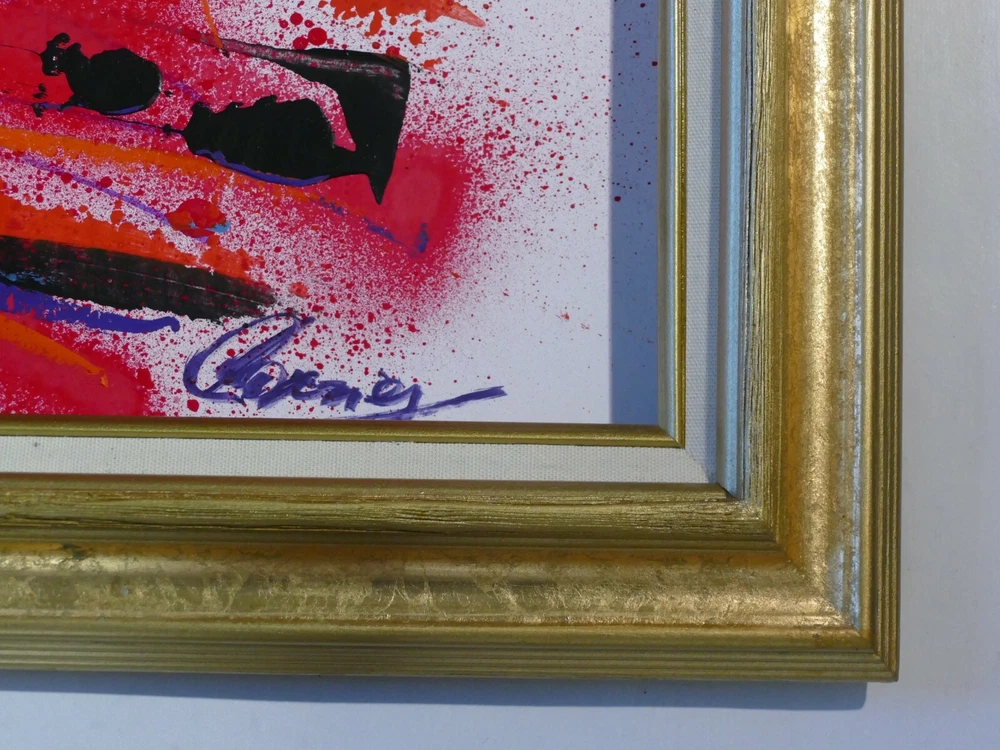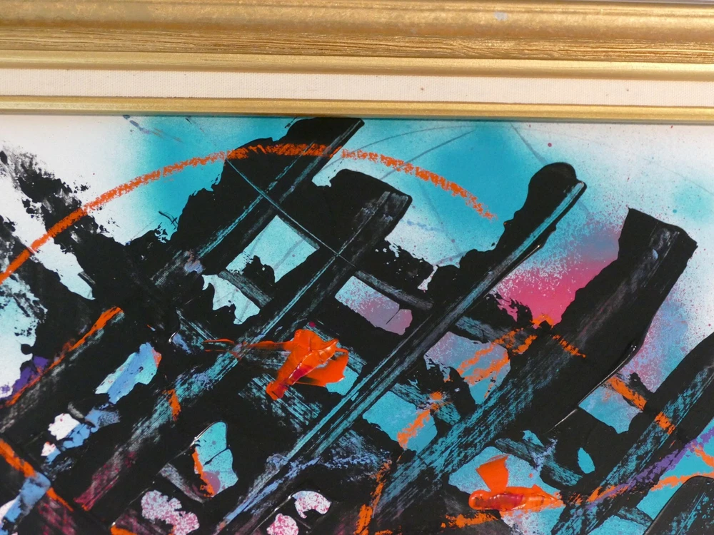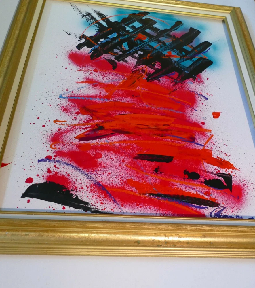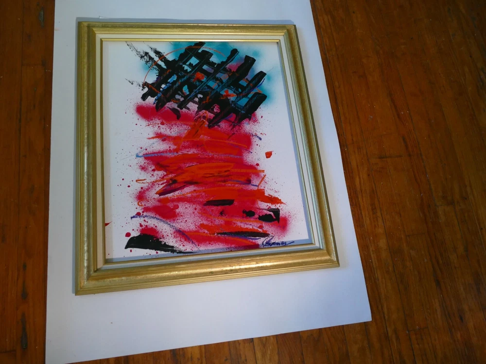 Original acrylic painting modern abstract art signed. Gold frame size 30"X26" Paint surface Heavy paper size: 20"x24".