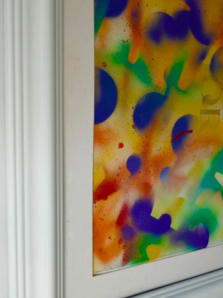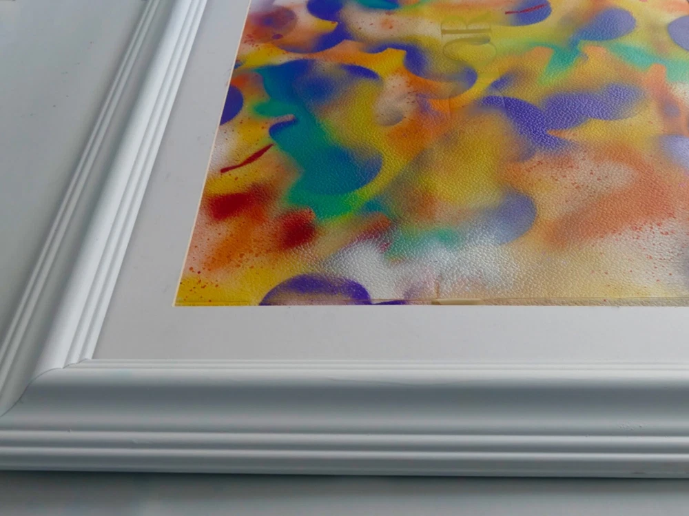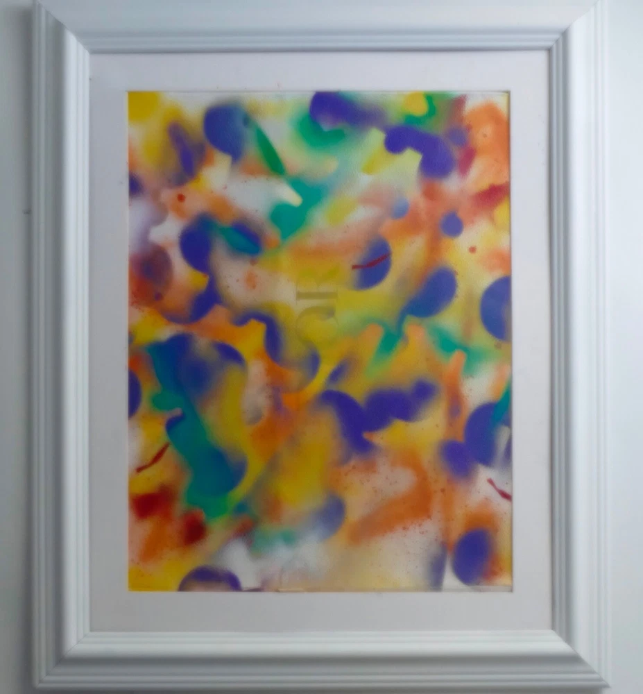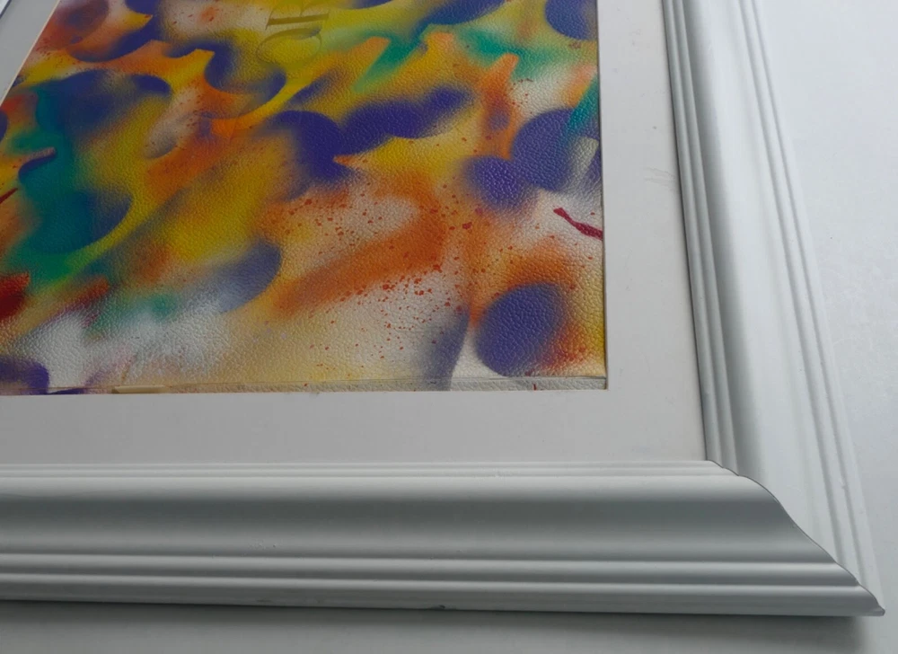 Original acrylic painting modern abstract art signed. white frame size 30"X35" Paint surface heavy paper size: 24"x30".