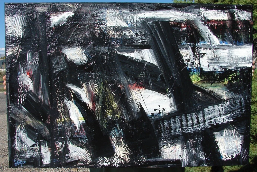 Modernist Expressionism Large Abstract Art Painting "EXODUS" by Mark A. Foltz.. This is one of Mark's Larger Modernist Abstracts. It has Bold Color and Wonderful Movement. This painting also is DNA fingerprinted by Mark on the back in blue paint. This one is titled "Exodus". This painting is an Original and is Hand Painted with Acrylic Paint. It is painted on a High Quality Professional Grade Triple Primed Canvas that is stretched on Wood stretcher bars, done with a tuck & roll technique so that it is staple free around the edges, these are longer lasting and heavier duty than most canvas' you see on the market today. Measures 24" X 36" and comes with a Certificate of Authenticity. It is Edge Finished, wired and ready to Hang, but is suitable for Framing as Well. ***FRAME SHOWN IS NOT INCLUDED AND IS FOR DISPLAY PURPOSES ONLY*** Mark has been drawing and painting for over 30+ years and he has won many awards for his drawings and paintings from various Art Shows. He has been in Multiple Galleries and his work is in Many Corporate and Private Collections Worldwide. This is not a Reproduction, Poster or Giclee it is an ORIGINAL piece of Art and is a High End Investment! Mark is one of the most collected Artist's here on Ebay. It is Prohibited by Copyright Law to duplicate, copy, reproduce or imitate Foltz's Original Artworks. The sale of Original Artwork does not include the Sale of Copyright, the Copyright is still retained by Foltz and Mighty Artist Productions©. As Always We Thank you so much for your support. **Check out Mark's other Paintings here on Ebay** Mark is a Very Unique and Prolific Artist and does many types of Paintings-and as you know that is almost unheard of in the Art World today. He has Various styles of Abstracts, such as Vortex, Exploding, Urban, Dream World, Pop Art and Expressionism. He also does Celebrity Pop Art, Fantasy Fish Pop Art, Flower Power Pop Art and Landscapes. He also has many sizes to choose from to fit your specific need. Artist M a r k A F o l t z* If you are an International Buyer, I go through the Global Shipping Program only. The program does not allow for combined purchases, so if you purchase more than one item, they will be shipped out separately. If you try to combine purchases or try to go out of the Global shipping program, I will have to cancel your purchases. Thank you for your understanding. Please email me immediately if there is anything about the product or the transaction that would stop you from leaving me positive feedback. I will do anything I can to make the situation right, I am easy to work with and I strive for 5 STARS!! Please read my descriptions carefully and if you have any questions please ask prior to bidding on or purchasing my items. My goal is not to make a ton of money off this but to give you a nice item at a reasonable price as everyone needs to stretch their money during these hard times. I think Ebay should be a fun experience for both buyer and seller, so I would like you to be respectful of me and I will do the same in return. Please remember I take the photos the Best I can, but All Computer Monitors vary when it comes to Viewing the color of items, also the lighting sometimes in the photos, and everyone sees color a little bit differently. So I cannot guarantee the color of the item you see on your monitor will be Exactly the same as what it will be when you get it in your hands. I try to get my products out as fast as possible, but if you read my ad it does state that I have 3 business days to ship your item. I will put in your tracking number once the item has been shipped. Also I ask that you please pay for your items within 3 days of winning Thanks.. Happy Bidding to you all and God Bless!