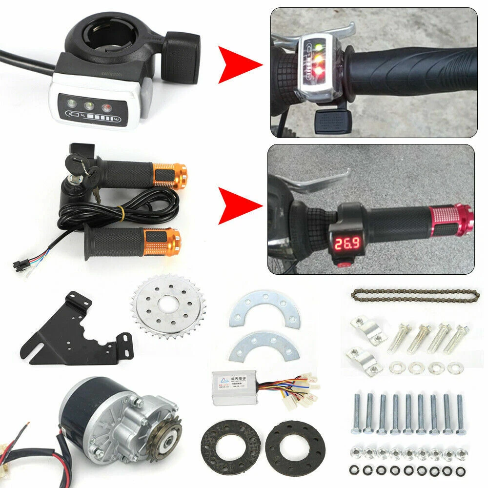 Modification Brush Motor Electric Bicycle Set 24V 350W E-Bike Conversion Kit Important NOTE: This item is for the bike that uses the hub diameter less than 36mm. This item doesn't include battery or charger. This is our newest kit for electric common bike, this kit mounts the sprocket on the wheel spokes, so it fits most of bicycle wheel. Motor use freewheel so when wheel rotating, the motor will not rotate, just like a normal bike, this can reduce resistance. The thumb kit includes: 1. 1x brush motor with freewheel 2. 1x Chain 3. 1x Customized sprocket & components 4. 1x Motor controller 5. 1x Mounting plate + bolts 6. 1x Wuxing thumb throttle (with battery indicator & switch button) Payment Delivery details Terms of sales About us Contact us Payment We accept ebay payment 。 Fees such as import duties, taxes are not included in the item price or shipping costs. These charges are the buyer's responsibility. Delivery details Shipping: 2-9 working days to: USA Terms of sales We maintain high standards of excellence and strive for hundred percent customer satisfaction. Feedback is very important to us. We hope that you contact us immediately before you give neutral or negative feedback, so that we can address your concerns. It is impossible to address issues if we do not know about them! About us Your satis faction is our ultimate goal. We work hard to earn your trust and future business. Our certified technicians have tested each item before shipping. The unit comes with 1 year limited warranty on all manufacturing defects. a) If you receive a defective item, you may return it or ask for a discount. Please contact us within 14 days after you receive the package. b) What you returned must be intact and in its original packaging as re? u. Customer is responsible for shipping costs of the returned item. c) We will cover the cost of shipping back t with the shipping rate indicated in the registration page. We will send you a new unit or refund the full payment you paid. Thank you. Contact us Business Hour Business Hour: Monday To Friday: 8:30 AM to 5:00 PM (Beijing China time) Due to time zones, our reply to your questions may not be immediately. But within above working time, we will reply your email within 24 hours. If it's non-workdays, please kindly be patient and wait till Monday. Please contact us with ebay message. Please feel free to contact us if you have any questions. Monday To Friday: 8:30 AM to 5:00 PM (Beijing China time) Due to time zones, our reply to your questions may not be immediately. But within above working time, we will reply your email within 24 hours. If it's non-workdays, please kindly be patient and wait till Monday. Please contact us with ebay message. Please feel free to contact us if you have any questions. Feature : Durable,Original size design fits perfectly Feature Local Warehouse!Fast Shipping Features high-performance,good stability,Convenient Use OE/OEM Part Number Does not apply Manufacturer Warranty 3 Years MPN ( MPN ) n/a Motor Power 350W Voltage 24V Brand Unbranded Part Type Thumb Kit Bike Type for Commom / Mountain Bike undefined-- Select -- Wheel Size N/A Suspension Type N/A Frame Size N/A Department Unisex Adults Color N/A Material N/A Tire Type N/A Number of Speeds N/A Brake Type N/A Motor Type N/A Gear Change Mechanism N/A Model N/A Handlebar Type N/A Shifter Style N/A MPN N/A Frame Number N/A EAN Does not apply UPC Does not apply
