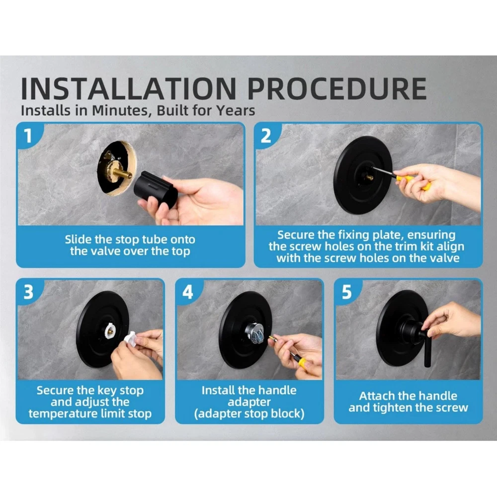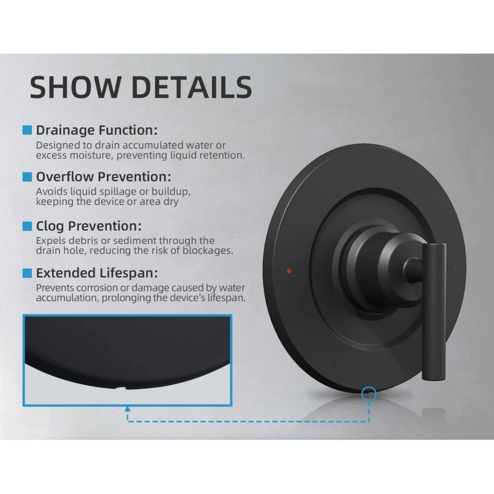 Product Description Features: 1. Wide Compatibility: The T2901 Matte Black Shower Trim Kit Is Compatible With For Moen 2510, 2520, 2570, And 2590 Pressure-Balancing Valves, 1222/1222B Cartridge ,Meeting Diverse Installation Needs.Rough-In Valve And Cartridge Are Not Included And Must Be Purchased Separately. 2. Intuitive Temperature Control: Features Red And Blue Indicator Dots For Easy And Intuitive Hot And Cold Water Adjustment.Maintains The Desired Water Temperature Within A ±3°F Range. One Dial Controls Both Volume And Temperature. 3. Upgraded Efficient Drainage Hole Design: Optimized For Fast Water Drainage, Preventing Water Buildup That Could Lead To Corrosion Or Damage, And Extending The Lifespan Of The T2901 Shower Trim Kit. 4. Construction/Installation: Crafted From Stainless Steel, Burr-Free Surface, It Ensures Durability And Resistance To Wear And Tear. Designed For Easy Installation, The Lever Handle Provides Smooth And Effortless Operation, Enhancing Your Shower Experience. 5. Classic Matte Black Design: The Timeless Matte Black Finish, Paired With Exquisite Craftsmanship, Ensures The Surface Remains Intact Even With Long-Term Use. It Complements A Variety Of Bathroom Decor Styles, Enhancing The Overall Aesthetic. Specifications: Type:Shower Trim Kit Condition: 100% New Material: Stainless Steel OEM: T2901 Fit Pressure-Balancing Valves: For Moen 2510, 2520, 2570, And 2590 Fit Cartridge: For Moen 1222/1222B Packaging Includes: 1* Shower Trim Kit Shipping 1. Items sent from US warehouse. 2.Receiving time = Processing time + Shipping time . 3. Processing Time: Around 1-2 business Days . 4. Shipping Time: 3-5 business day. it may have a little delay during some holiday (such as Christmas), any problem, please feel free to contact. Returns 1. 30 days warranty from the purchased date. Please contact us via email before returning the defective item. 2. Our warranty does not extended to any product that are physically damaged or that are not under normal operating conditions as result of misuse or improper installation on the buyer/user's part. 3. Return items should include the original packaging and all accessories. buyers MUST contact us for the returning address. 4. In all cases, buyers pay shipping fees at their own cost to return products for exchange or refund. We will be responsible for the postage of replacements. Refund will be made upon receipt of the returned item. Contact Us If you have any question, please e-mail us immediately, we will reply you as quickly as possible. We care about our valued customers, and will always try to help you. About Us We are committed to providing you with the best quality products and services. We hope your shopping experience is easy and enjoyable. Payment We accept all verified payment from eBay. You may also like Upgraded RP255132 Faucet Stem Assembly For Delta Two Handle Kitchen Faucet 12.89 USD Sword Swallowing Illusion Close Up Street Magician Real Magic Trick Props A 11.89 USD 5pcs 3.4mm Fountain Pen Converter Ink Cartridge Filler Absorbor Suction Tool 9.89 USD 1Pc Gray Silicone Shell w/ Carabiner Fits For JBL GO3 GO 3 Bluetooth Speaker 10.89 USD 3* Hose Swivel For Polaris 360 TR36P Pool Cleaner Repair Accessories 9-100-3002 16.49 USD Silver EF-S Lens to EF Mount Adapter Ring For Canon EOS Series With EF Mount 38.59 USD powered by