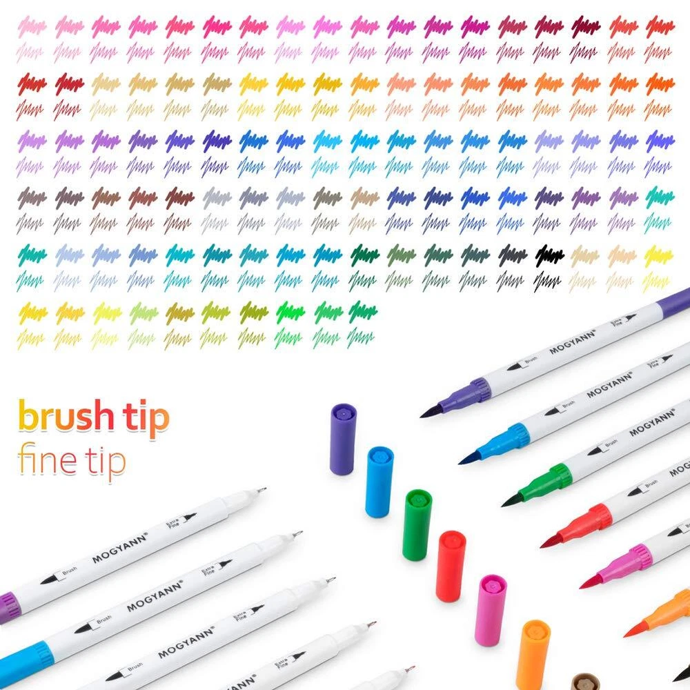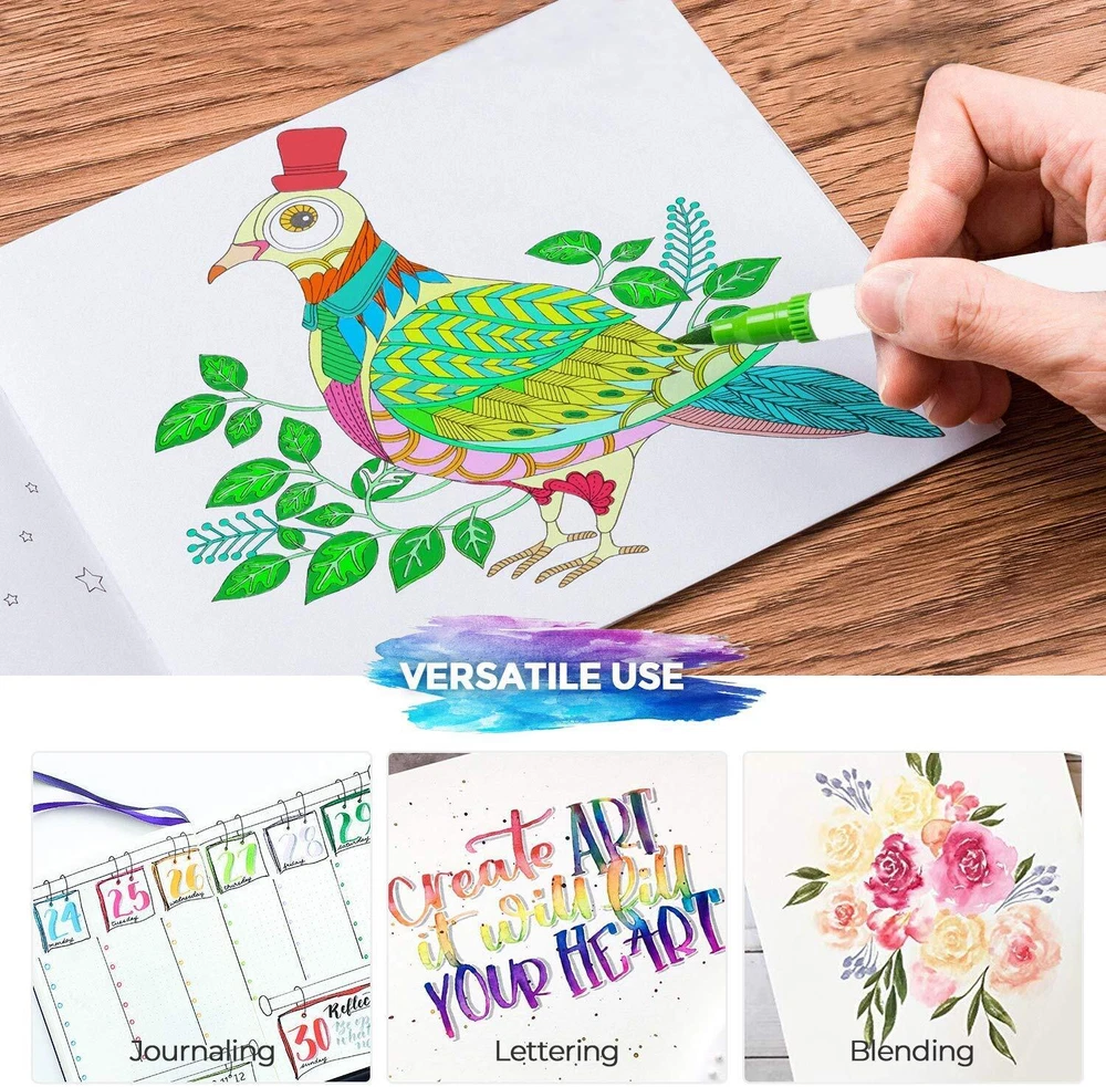 Elevate your art with our dual tip markers featuring both brush tip and fine tip for versatile creativity; Great for sketching, drawing, and coloring One hundred colors markers give you plenty of options to create the color you want most Experience smooth writing and seamless blending with our dual tip markers, making it effortless to create beautiful gradients and effects Unleash your imagination with markers that boast a large capacity of water-based ink, ensuring vibrant and long-lasting colors Whether you're a professional artist or a beginner, our markers are ideal for projects of all sizes and styles, ensuring precision and quality with every stroke
