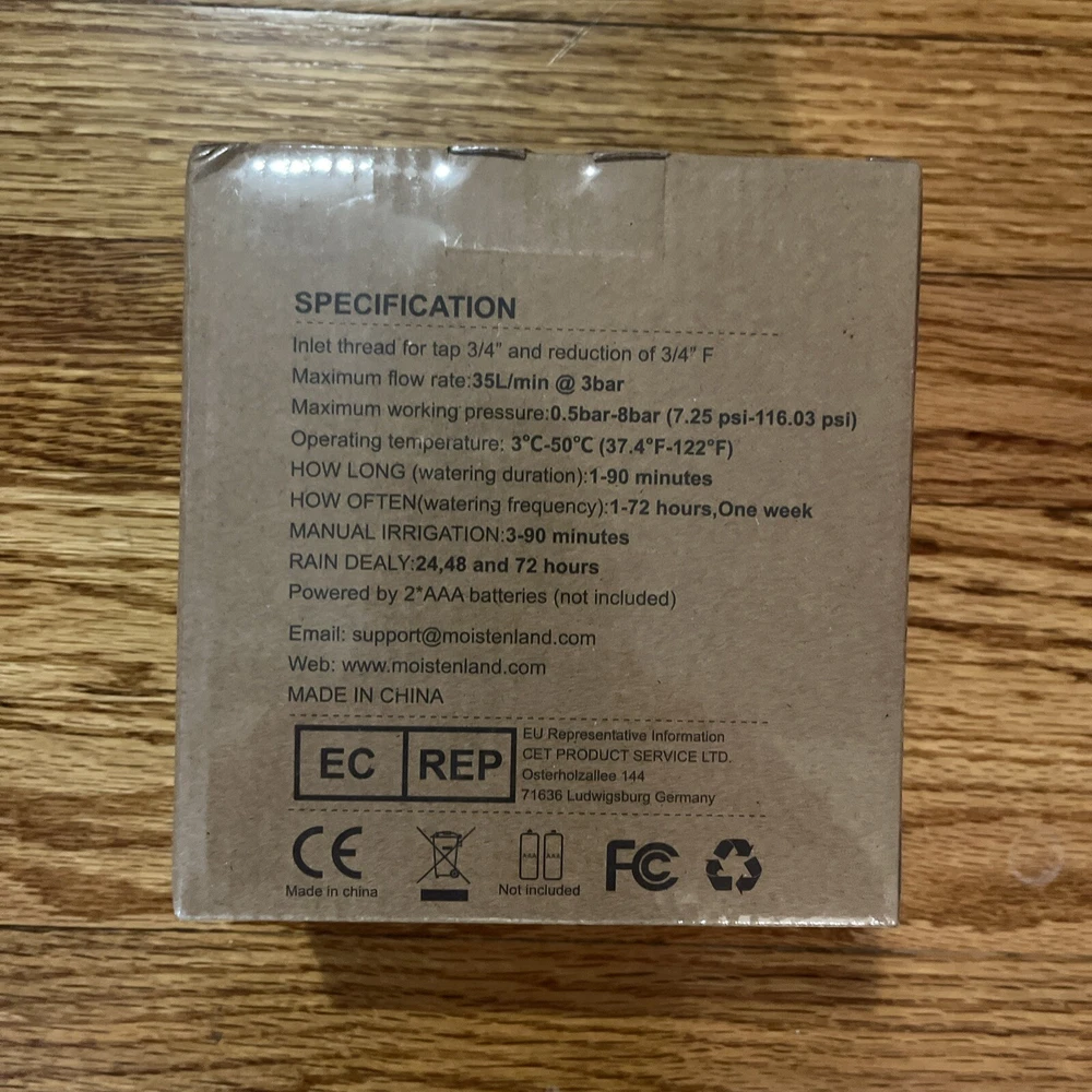 Ships Fast! This Moistenland SLV-012 water sprinkler timer is the perfect addition to your lawn and garden watering system. With its automatic watering function, you can ensure that your plants are always well-watered and healthy. The timer comes with a set of instructions and a dial to make it easy to use and customize your watering settings. The product dimensions are 4.7"D x 2.6"W x 3.2"H and it weighs 11.3 ounces. This water sprinkler timer is manufactured by Moistenland and has three different settings to choose from. It is suitable for both home and garden use and is classified under the categories of Home & Garden, Yard, Garden & Outdoor Living, and Watering Equipment.
