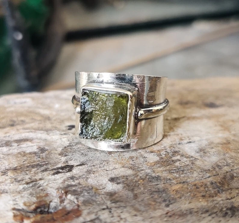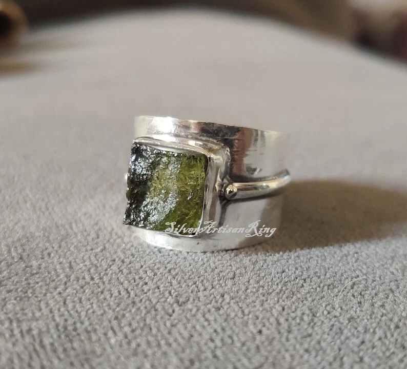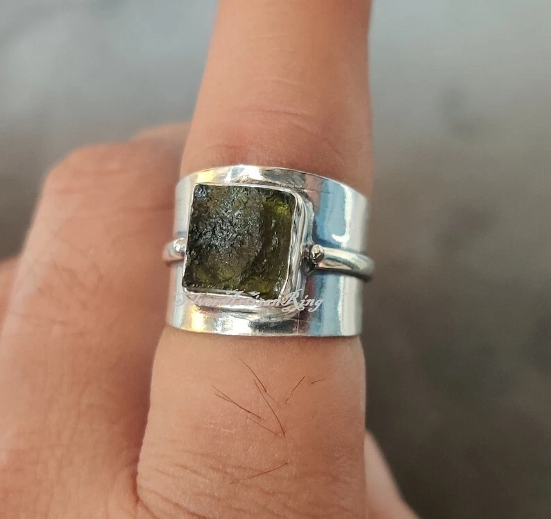 Welcome To My Shop Moldavite Gemstone Ring* Beautiful Band Ring* Handmade Ring* 925 Sterling Silver Ring* Amazing Ring* Stylish Ring* Gift For Her/ Him*** All my Designs are original. Stone - Moldavite Size - All Size Ring Setting - Bezel This Ring is for Women You will receive a Ring like the one in the pictures This Ring have 925 Stamp Suitable for use in everyday situations, or can also be used as a gift. Unique design will make a special attraction for the wearer. I make my jewelry with passion and love. The perfect gift for a Special occasion Wholesale Orders Accept on Wholesale Price All Pieces Have 925 Stamp