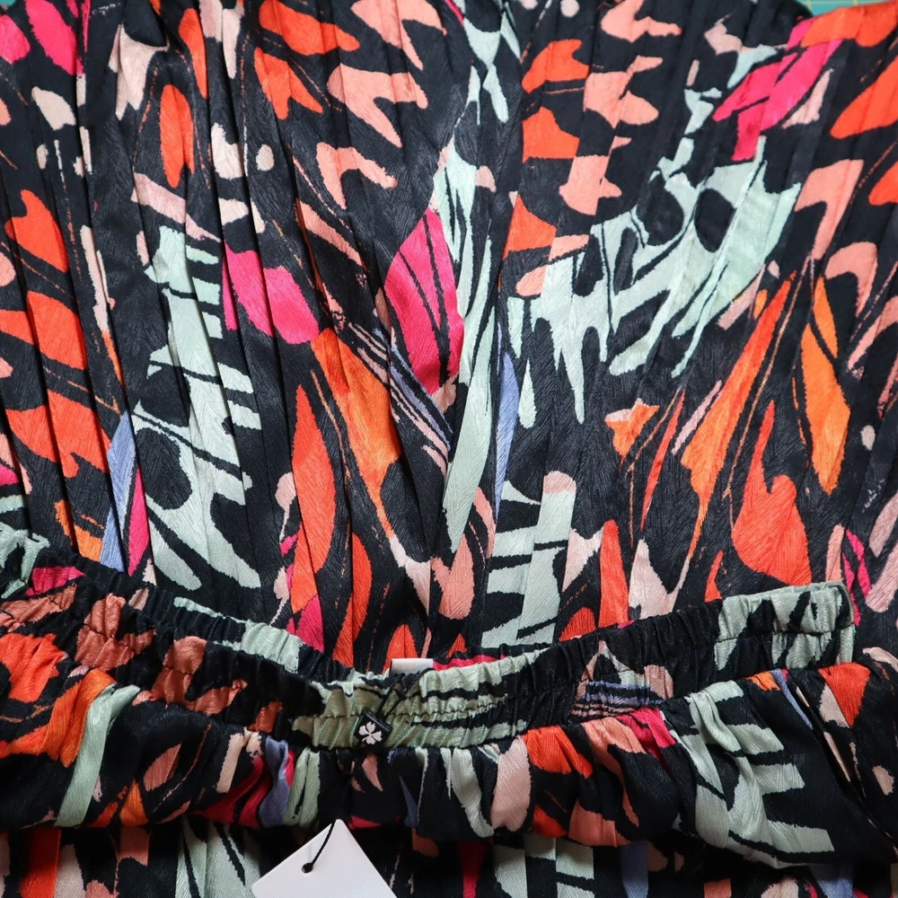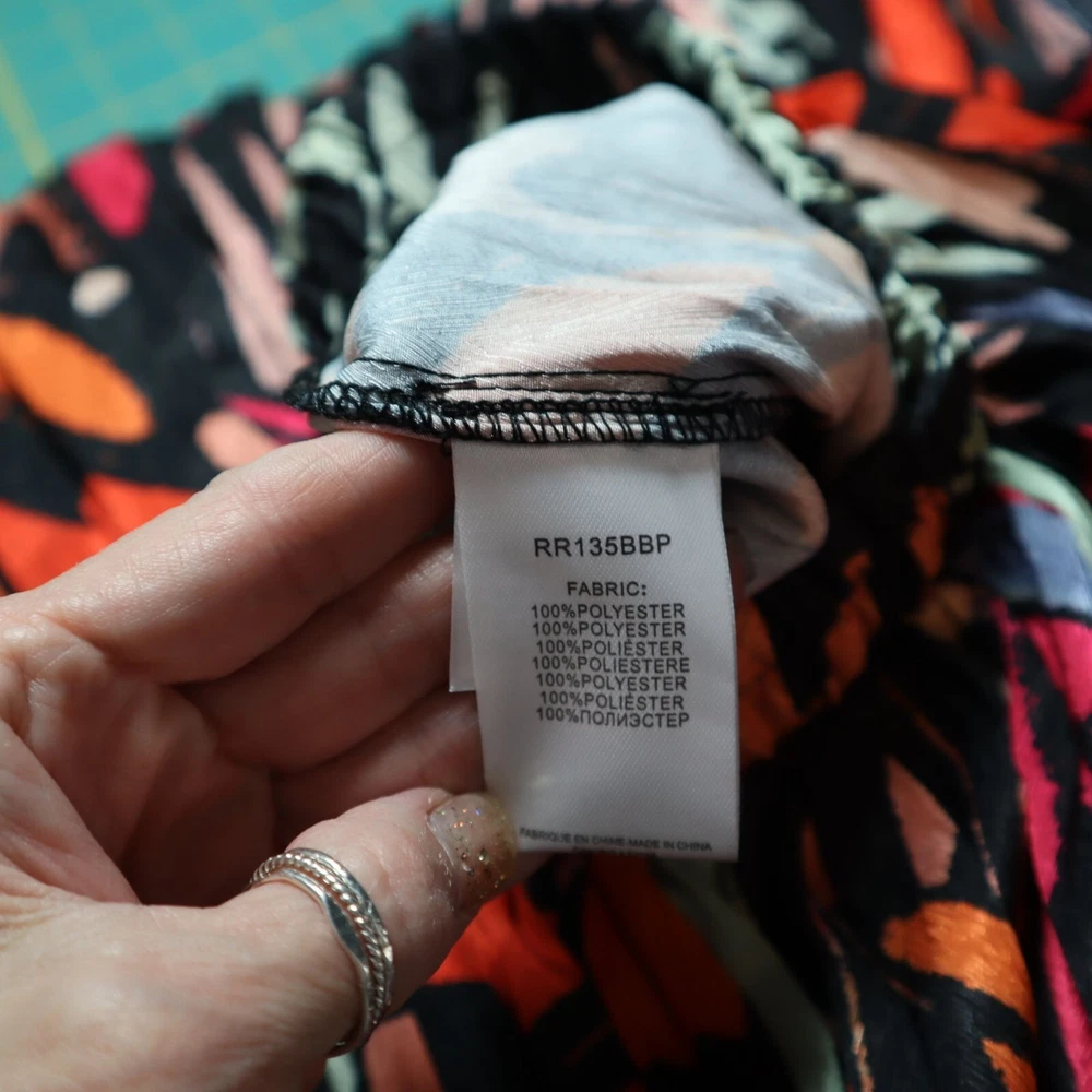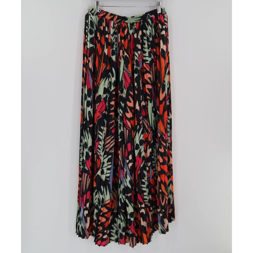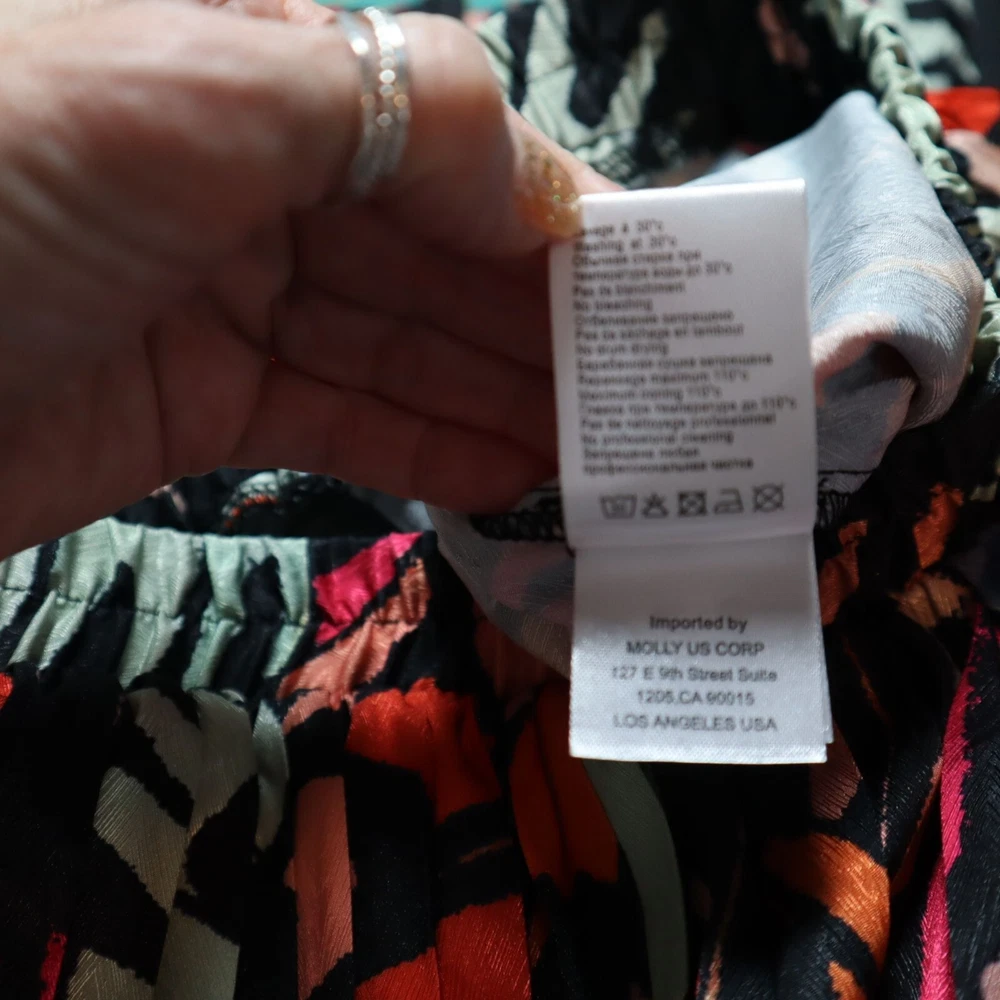 LISTING TITLE Molly Bracken Black Helena Palazzo Pants Colorful Abstract Pleated Office Career Add a pop of color to your wardrobe with these vibrant woven pants. Who knew comfort could look this good? • Elastic waistband • Abstract design • 100% polyester • Lightweight • Made in China Medium: Waist laid flat = 15 inches Rise = 14 inches Inseam = 28 inches Leg opening = 11 inches Condition: New With Tags