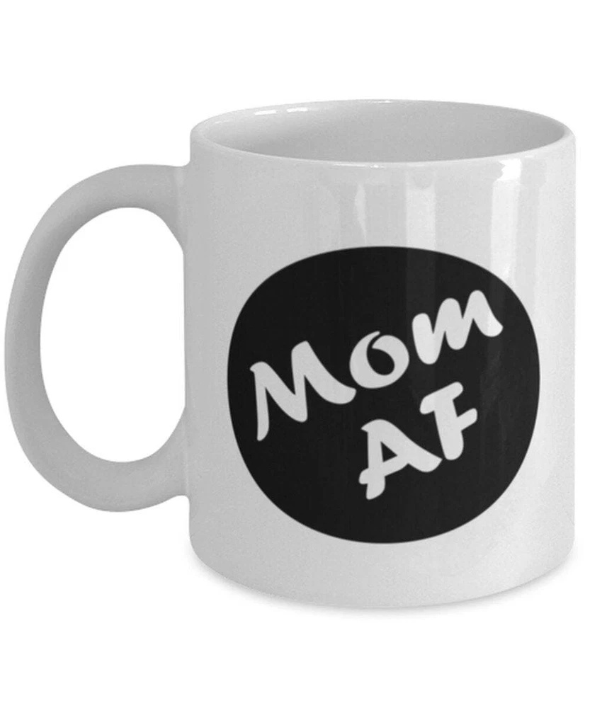 Mom Funny Coffee Mug Mom Af Funny Mug For Women Mom Life Mug Mothers Day Mug Product Details.. This high quality 11oz. ceramic white mug has a premium hard coat that provides crisp and vibrant color reproduction sure to last for years. Perfect for all hot & cold beverages. The highest quality printing possible is used. It will never fade no matter how many times you wash it. Material: 100% Ceramic. Print both sides. Dishwasher and Microwave Safe. High Gloss + Premium White Finish. Printed in the U.S.A. Personalized & Custom. We support personalized and custom mug to add custom, when placing an order, you can add notes to the "order note" in shipping address section. Also you can contact us directly via message. Shipping Info. Ready to ship in 1 to 2 business days, All products are made-to-order and proudly printed in the United States. Shipped by USPS and DHL, You will receive your order in 5-7 days. Replace & Refund. All products are defective during shipping broken, chipped will be replaced free of charge. You are not satisfied with the product, we will refund 100% money to you. If any other issues arise, please do not hesitate to message, we would be more than happy to assist you.