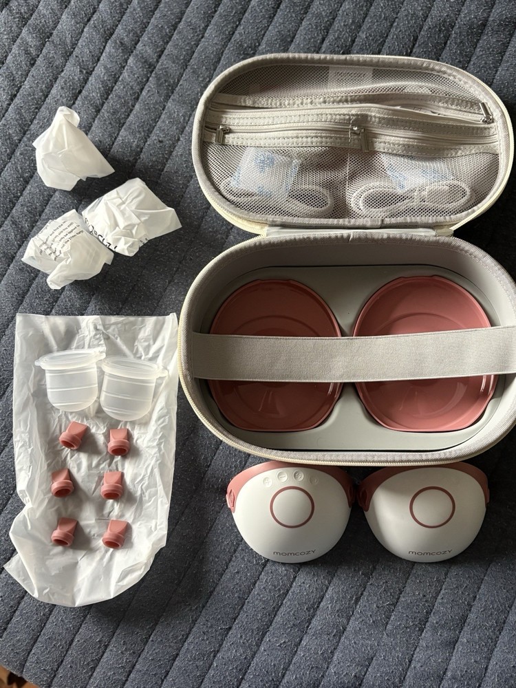 The Momcozy M9 Double Wearable Breast Pump in White and Pink is a convenient and efficient solution for nursing mothers. This double electric breast pump is designed for hands-free pumping, allowing for convenient use on the go. With a size of 24mm and a battery-operated power source, this pump is compact and convenient for busy moms. The set includes a double pumping kit, making it easy to express milk for your baby. The stylish pink color adds a fun touch to this practical and functional breast pump. Offers 6oz capacity ***OPEN BOX*** used twice but washed with unscented hypoallergenic soap and sanitized after each use******