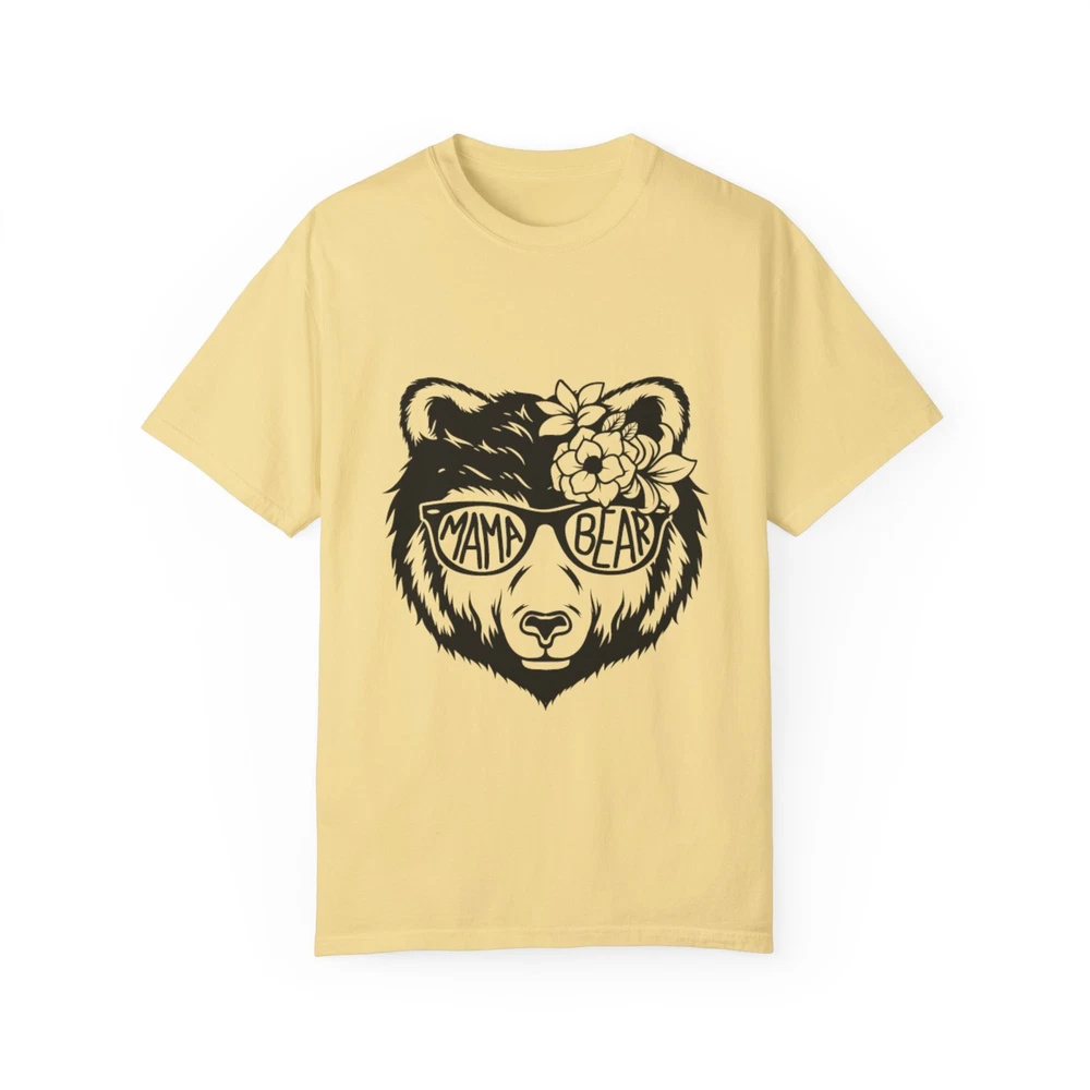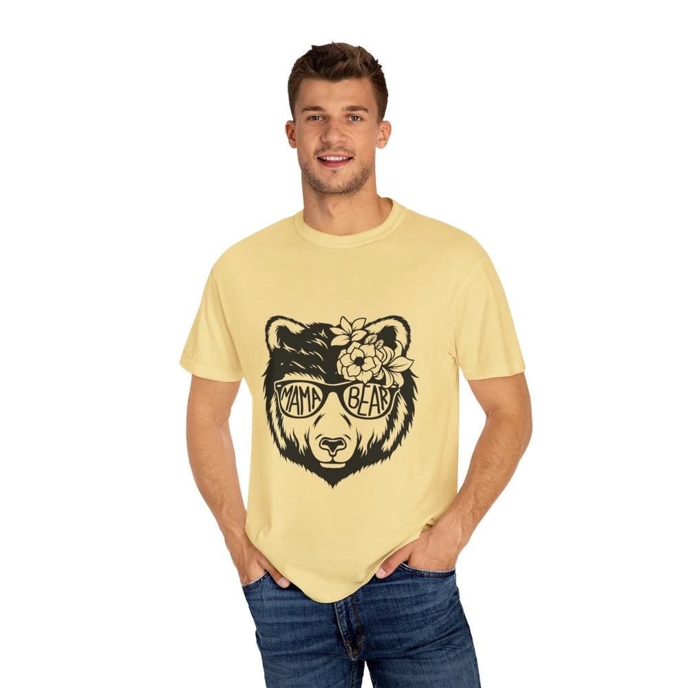A trendy and comfortable T-shirt featuring a design of a cool momma bear wearing glasses. This garment gives off a relaxed and casual vibe, perfect for everyday wear. Ideal for moms, animal lovers, and anyone looking for a unique and stylish tee. Great for Mother's Day, birthdays, or just a fun addition to your wardrobe. Product features - Available in sizes S to 4XL - Double-needle stitching for durability - Garment-dyed fabric for a soft texture - Made with high quality, pre-shrunk US cotton - Ideal for casual and semi-formal settings Care instructions - Machine wash: cold (max 30C or 90F) - Do not bleach - Tumble dry: low heat - Iron, steam or dry: low heat - Do not dryclean
