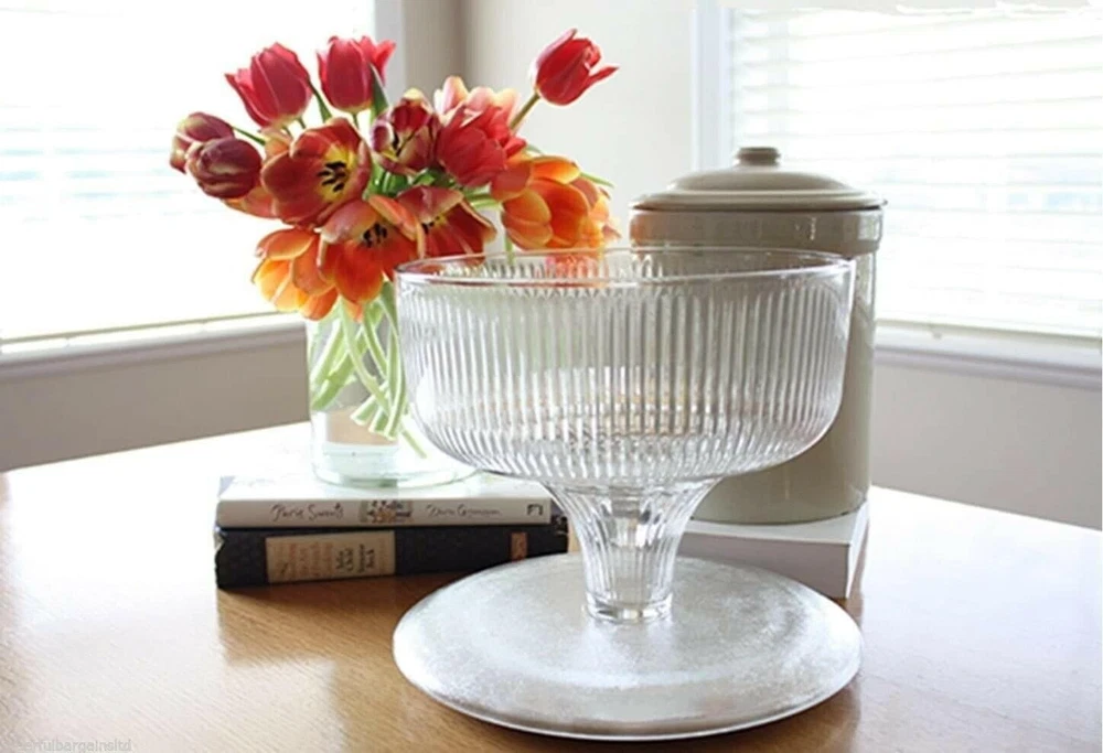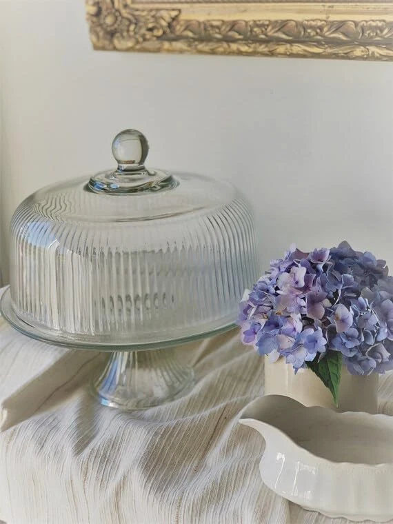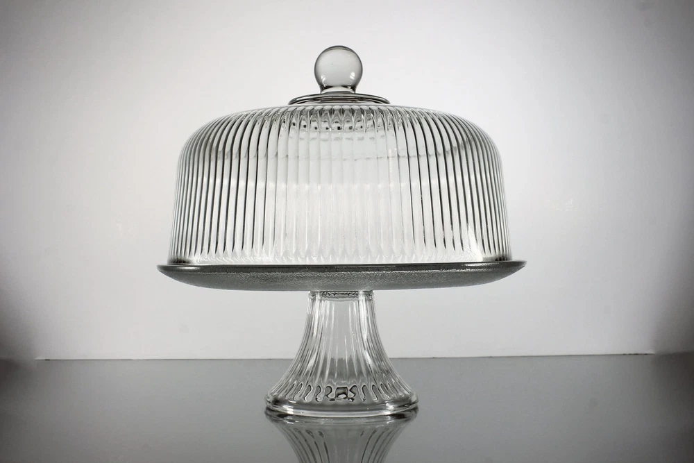 The grand but simple beauty of the Monaco cake plate adds extra grace and easy display to cakes, pies, and pastries. Flip over both pieces to reconfigure, and the stand transforms into a lovely punch bowl. The Monaco styling includes wide-wale interior ribbing on stand and lid and a generous spherical finial. The cake base is textured beneath to facilitate carrying, and the piece is stable in either of its shapes. Assembled as a cake plate, it measures 11 inches in diameter and stands 10-1/2 inches high. The dome rests 4-1/2 inches above the plate at the center. Both pieces are safe in the dishwasher. --Emily Bedard Product Description Proudly display cakes, pies and pastries. The plate features wide ribbing and a textured base for easy carrying. manufactures and markets a vast array of quality products for the home. is best known for their high quality glass tabletop and bakeware products manufactured in the USA since 1905. Glass cake stand and ribbed glass dome made in the USA Clear glass Dishwasher safe Can be flipped over and used as punch bowl