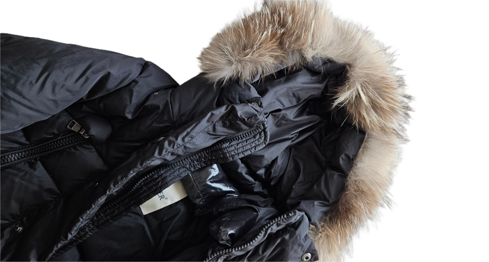 Moncler Black Fur Hooded Puffer Jacket Attributes Material : Polyamide, Fur Color : Black Size : 4 Yrs Condition Desc. : Very Good