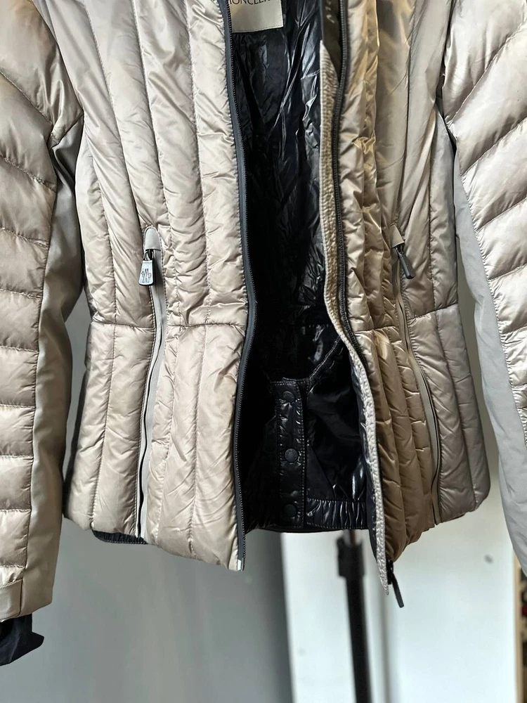 Stay warm and stylish this winter with the Moncler Bruche Grenoble SKI Jacket. Made with polyamide outer shell material, this puffer jacket features a solid pattern with quilted accents, a zip, button, and snap closure, and the Moncler logo. The jacket is perfect for travel and is designed for women in size small. The jacket is lined with polyamide and has a down insulation material, making it warm and wind-resistant. It also features compressed, weathergear, waterproof, lightweight, full zip, breathable, and water-resistant qualities, making it perfect for the winter and fall seasons. The jacket also has zipped pockets and a hood, adding to its practicality and style.