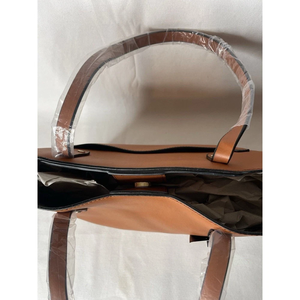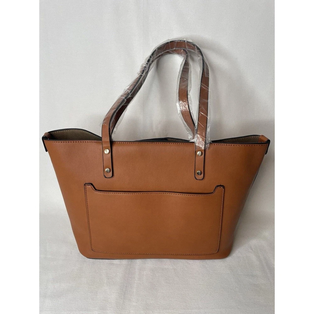 Mondani Loren Faux Leather Tote Shopper Bag Purse Brown Snap Closure with Cell Phone Pocket 14W x 9H x 5D New with tags