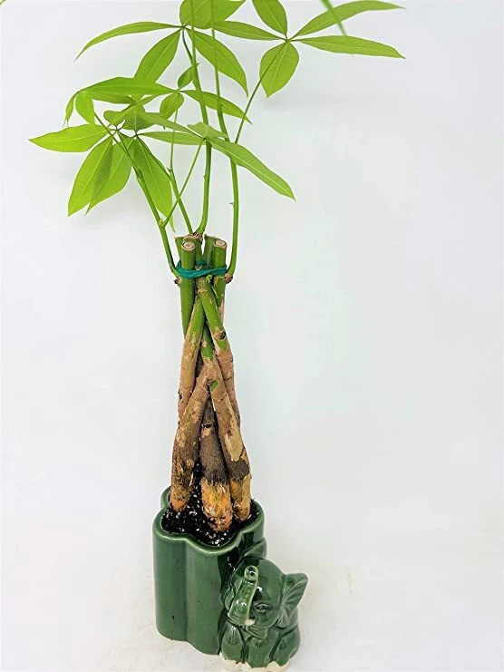 Pachira Aquatica Money Tree Bonsai In Elephant Ceramic Pot Feng Shui Good Luck Popular decorative plant.Brings good luck and fortune to family and business.As the tree grows, new leaves unfurl into beautiful five-leafed stems.elephant Ceramic pot.10-12'' inch live plant Pachira aquatica is a tropical wetland tree in the mallow family Malvaceae, native to Central and South America where it grows in swamps. It is known by its common names Malabar chestnut, French peanut, Guiana chestnut, Provision tree, Saba nut, Monguba (Brazil), Pumpo (Guatemala) and is commercially sold under the names Money tree and Money plant. This tree is sometimes sold with a braided trunk and is commonly grown as a houseplant, although more commonly what is sold as a "Pachira aquatica" houseplant is in fact a similar species, P. glabra. Payment Payment accepted through Paypal. Shipping We do not offer local pickup or combines shipping. We do not ship to APO's. We shipping to PO Boxes. We only ship to the lower 48 states and do not ship to Alaska/Hawaii, US Protectorates, APO/FPO, Puerto Rico, Virgin Islands (U.S.), Bermuda, Greenland, Mexico, Saint Pierre and Miquelon Return We want you to be happy with your purchase. You may return items in its original condition within 30 days. Please to process a return.