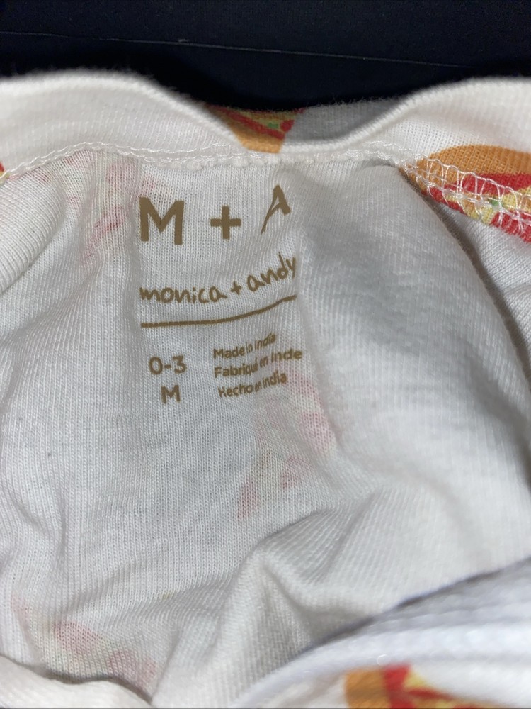 Dress your little one in comfort and style with the M+A by Monica & Andy Baby One-Piece Pizza outfit. Perfect for newborns and infants aged 0-3 months, this two-piece set features a white base adorned with a playful pizza pattern, making it an ideal choice for casual wear or during travel. Crafted from 100% organic cotton, this onesie ensures a gentle touch against your baby's skin, promoting breathability and ease. The long sleeves provide warmth, while the convenient zip closure allows for hassle-free diaper changes. Complementing any baby wardrobe, this unisex set is a must-have for those who value both fashion and sustainability.