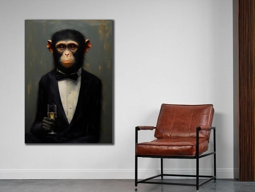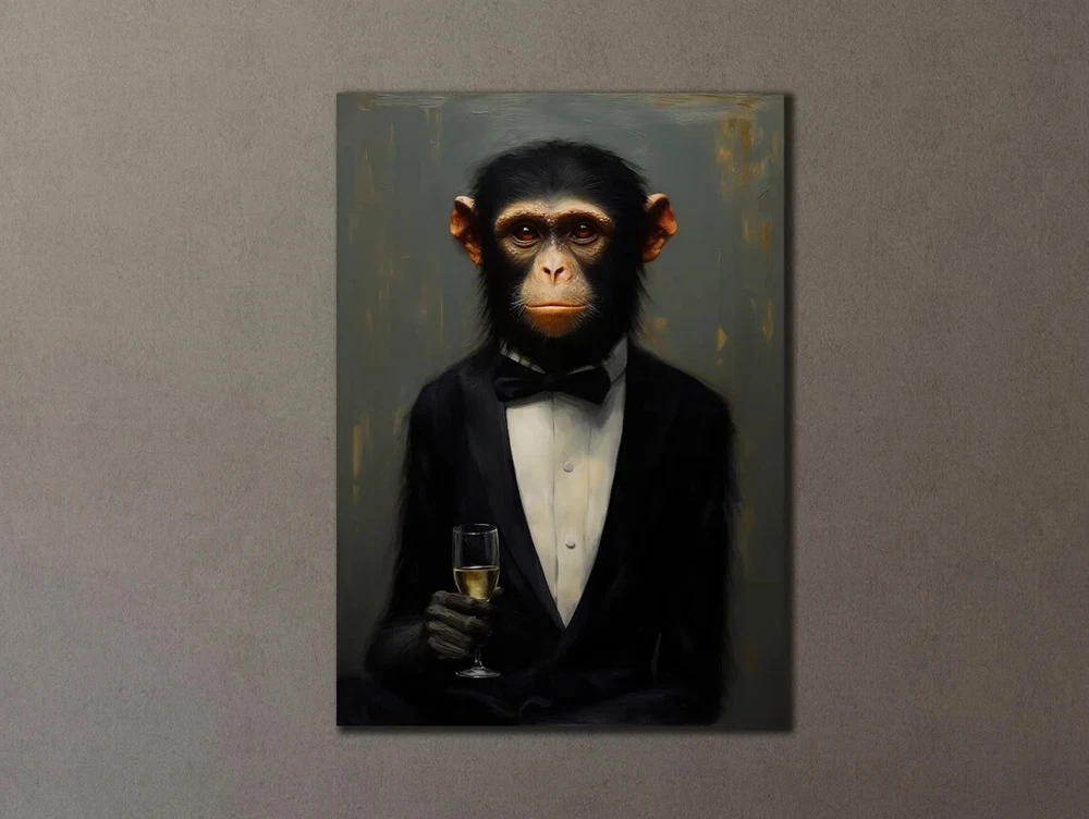 Monkey In Suit with Champaign Abstract Paint Wall Art Canvas Unframed Print Art