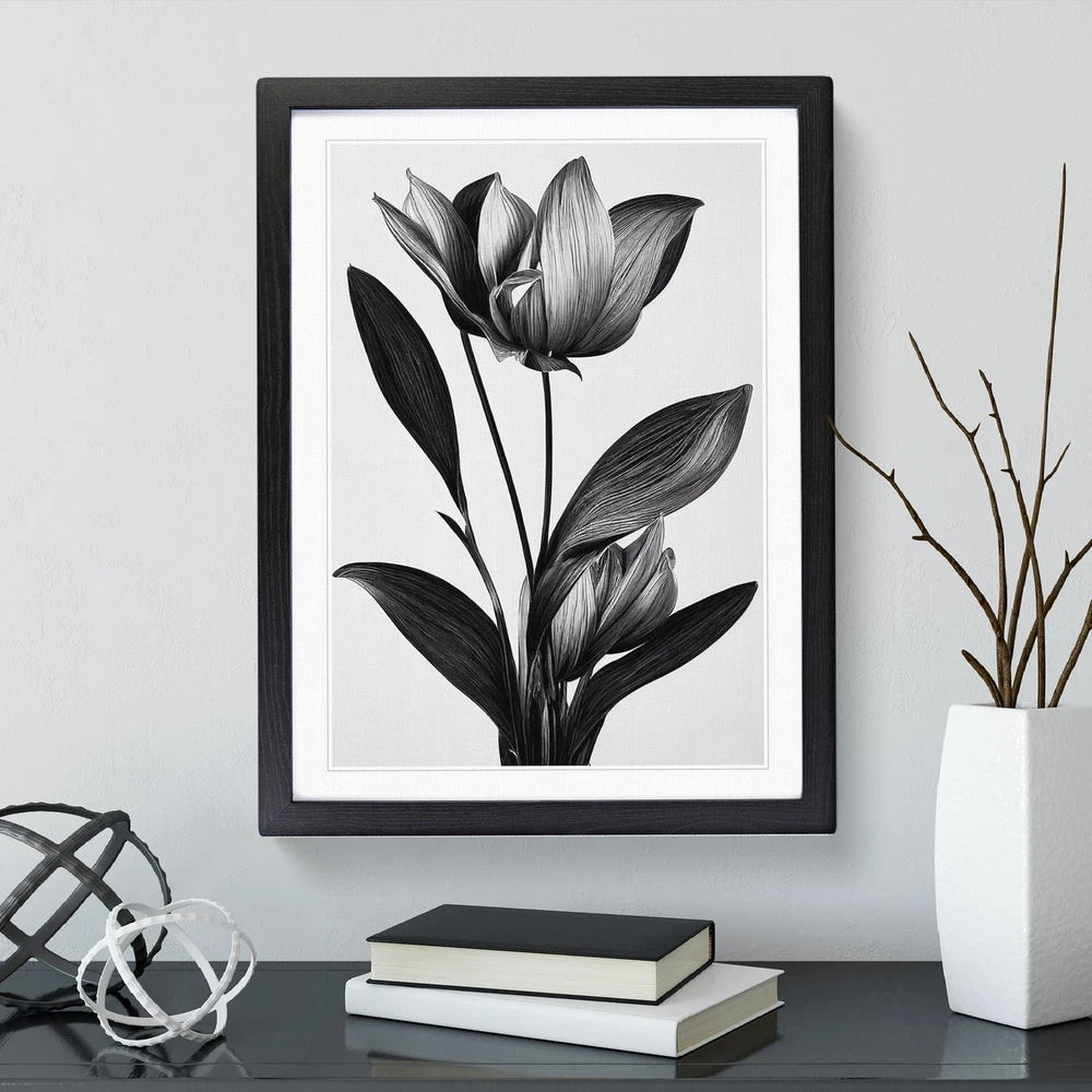 Transform your living space with our captivating framed wall art prints. Crafted in the UK, the stunning Monochrome Flower framed print is designed to elevate your home decor. We utilise high-quality inks to ensure the colours of the artwork are rich, vibrant, and true to life. The print seamlessly fits within a contemporary frame, creating a stylish wall art picture that is ready to hang in your living room, lounge, bedroom, dining room and home office. Visit Our Shop eBay Message Framed Art Print Enhance your living space and showcase your individual style with our framed prints. Each design is printed upon premium art paper with fade-resistant inks, ensuring the colours remain rich and vibrant for years to come. The print is encased in a ready-to-hang frame, offered in black, oak, or walnut, and safeguarded by shatter-resistant Perspex. An ideal addition to your home, and the perfect gift choice. Like what you see? Visit our eBay store to see more. Premium Quality : The design is printed on quality art paper, enhanced with fade-resistant colours. Ready to Hang : The frame is pre-fitted with hanging hardware, making wall mounting simple, safe and secure. Frame Dimensions : A4 - 25 x 34 cm / A3 - 34 x 46 cm / A2 - 46 x 64 cm. Fast Shipping : Prompt, reliable UK-based dispatch. Customer Satisfaction : Our priority is your satisfaction which is why we offer a hassle-free return policy. Payment You can pay for your order safely and securely via credit or debit card, Apple Pay, Google Pay, and PayPal. Shipping Production times are 1 to 2 working days. Orders are sent via Royal Mail or Evri (depending on size). Returns For your peace of mind, we have a 30-day returns policy in place. Please, contact us for more details. At Big Box Art, we are dedicated to providing high-quality wall art and decorative homeware items. From the outset, we've focused on excellence in our products, service, and reputation, continually enhancing our standards. With an extensive selection of designs, you're certain to discover the perfect piece to suit your taste. ? Copyright 2021, Big Box Art. All rights reserved. Made with by eBayshopdesign.org