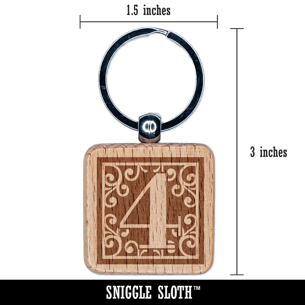 Monogram Swirls Number 2 Two Engraved Wood Square Keychain Tag Charm