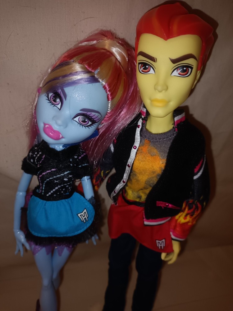 Original 2 pack from the classroom series edition if the monster high dolls thus is Abbey Bombinable AND Heath Burns Dolls. They come complete with original accessories and outfits. Abbey has super soft silky and shiny wefts of white and pink hair in its original up do and both Dolls are in excellent condition. They are both original mattels from the 2013 collection. Set Includes: 1x Abbey Bombinable Doll 1x Pinafore 1x Skirt 1x Top 1x Pair of Shoes 1x Pair of Earrings 1x Bangle 1x Heath Burns Doll 1x Pinafore 1x Pair of Jeans 1x Pair of Shoes 1x Top 1x Jacket Please note this set Includes only the items listed and photographed and does not include any original packaging or paper accessories. If you would like to combine postage on multiple items please feel free to message me as I would be more than happy to combine postage on multiple item purchases. All my dolls have been kept for display and cleaned and maintained while in my care. We hope you enjoy adding them to your own collection as much as we have enjoyed having them in ours. Many thanks for looking have a great day!