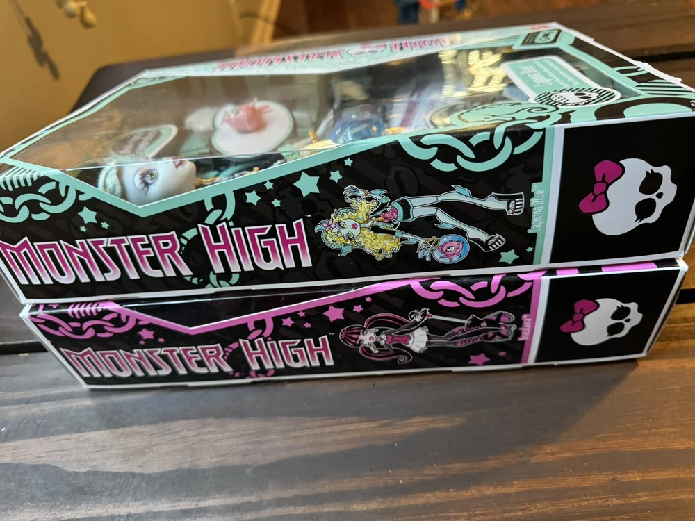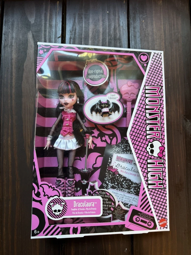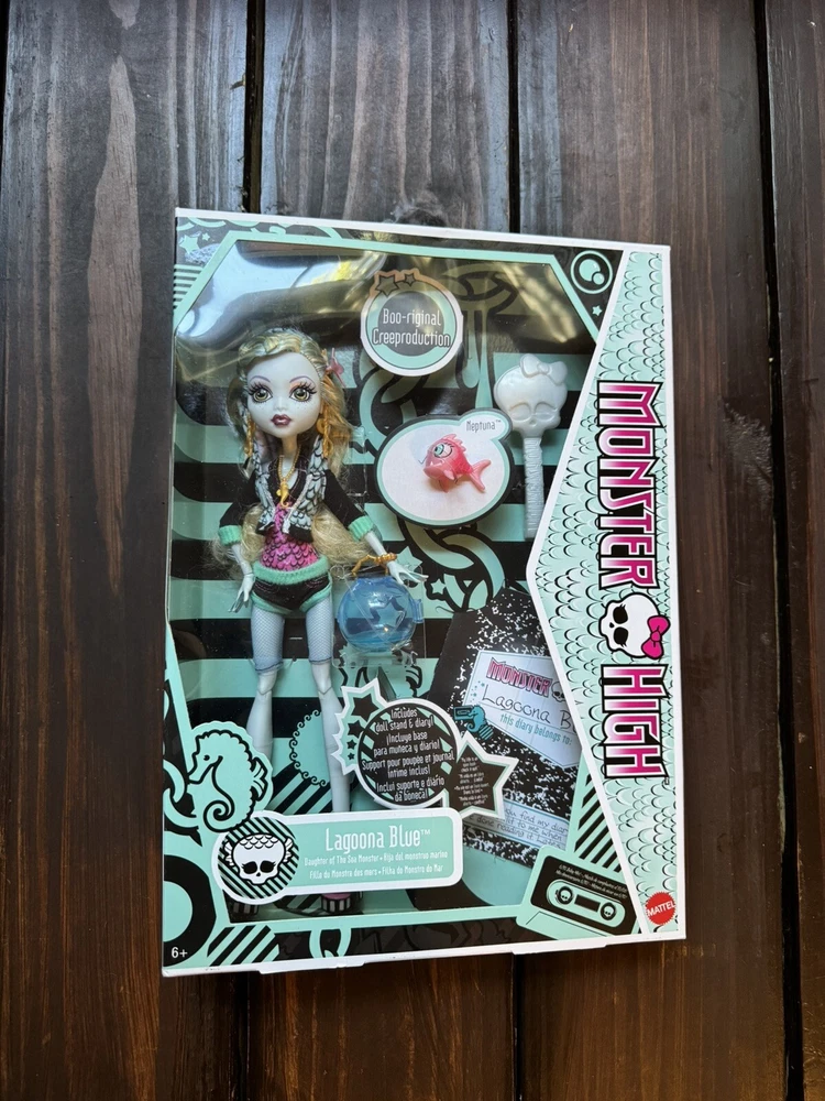 Brand New, 100% Authentic Monster High Draculaura Reproduction Doll Wearing Original Fashion & Shoes with Pet, Doll Stand & Accessories, 10-5-inch Collectible Toy AND Monster High Lagoona Blue Reproduction Doll Wearing Original Fashion & Shoes with Pet, Doll Stand & Accessories, 10-5-inch Collectible Toy Monster High returns with spooktacular creeproductions of the original ghouls, and they're just as freaky-fabulous as they were on the first day of school! 1 of each doll with this bundle! In hand, ready to ship today.
