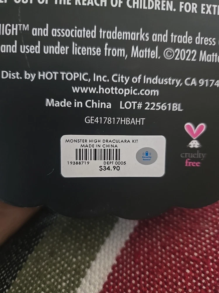 Coverage:N/ASet Includes:Eye ShadowMaterial:N/ABrand:Mattel Hot TopicFormulation:N/AMPN:N/AColor:MulticolorActive Ingredients:N/ANumber of Items in Set:N/ALash Length:LongSkin Type:AllCountry/Region of Manufacture:ChinaDepartment:WomenEffect:N/AAlphabet Cream Type:N/AMakeup Shade:AssortedSize:11” X 7 1/2”Features:Animal Cruelty-FreePeriod After Opening (PAO):N/A
