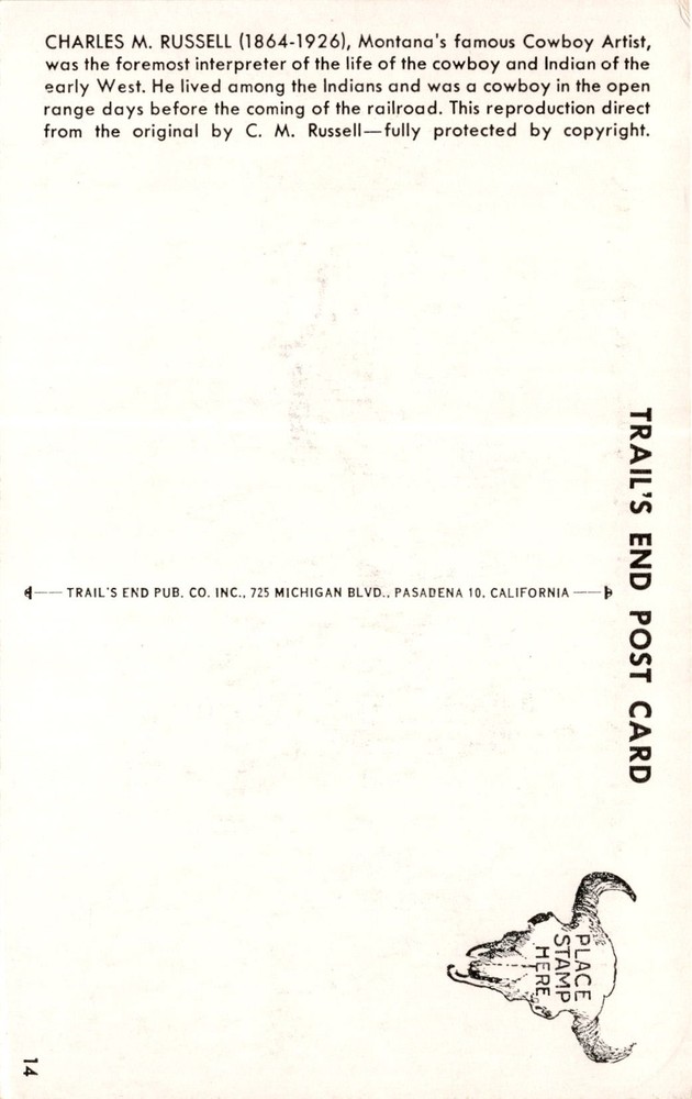 1952, TRAIL'S END PUB. CO., INC., Charles M. Russell, Montana, Postcard