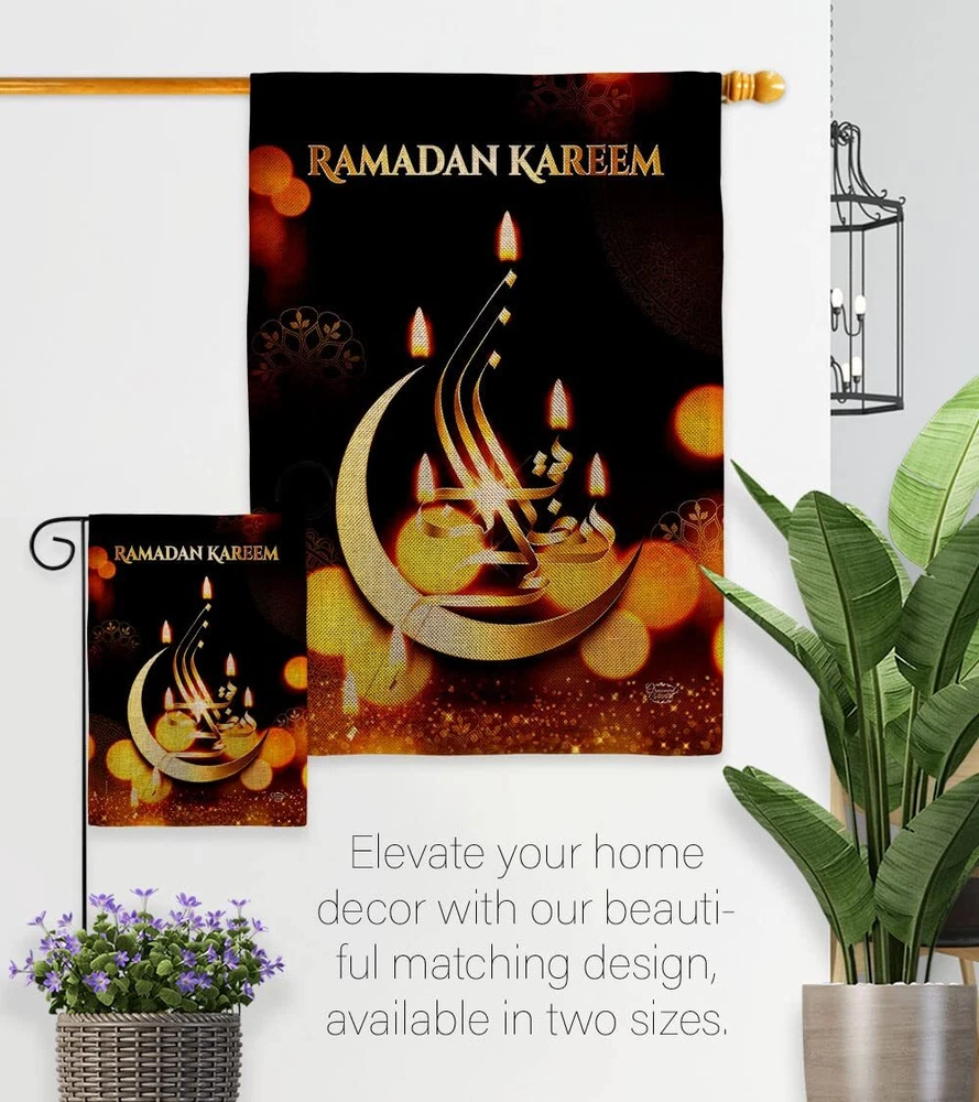 Month of Ramadan Burlap Garden Flag Set with Stand Religious Christian Religi...