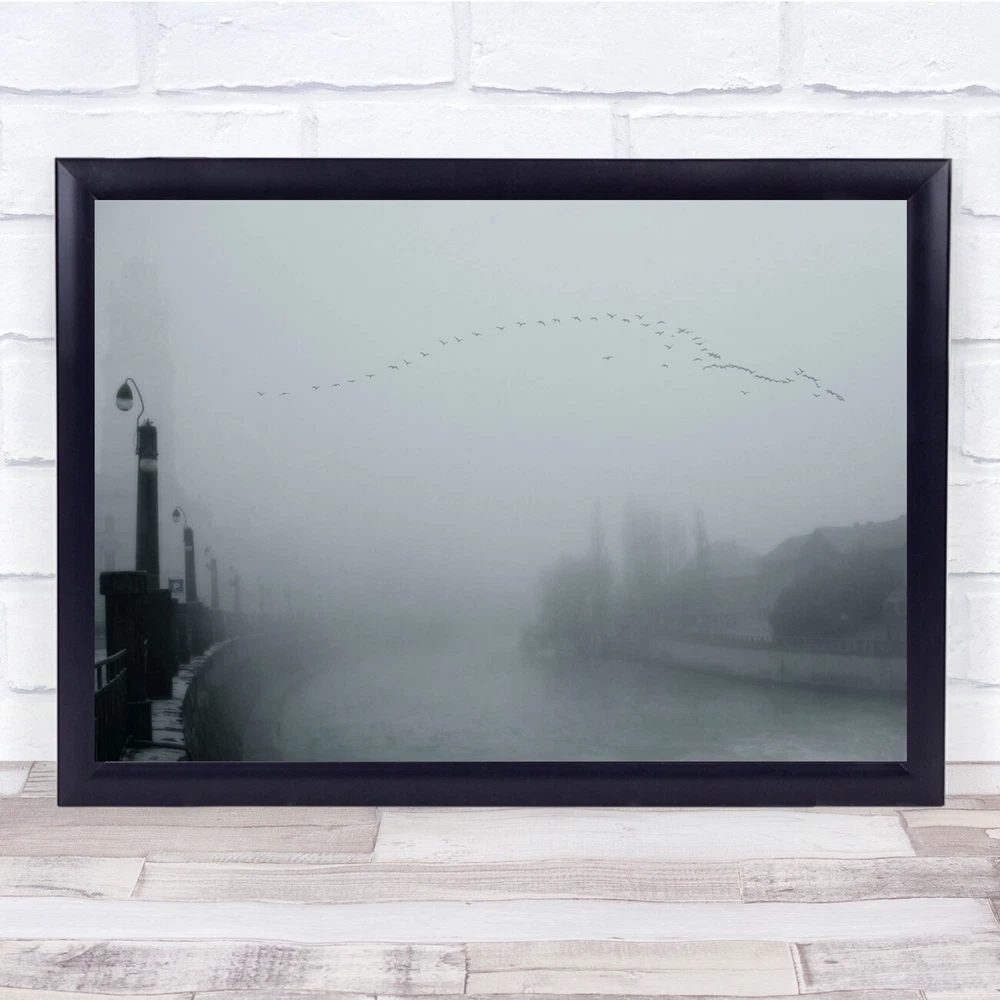 Mood Cold Winter Mist Fog Birds Urban Late Visitors Wall Art Print