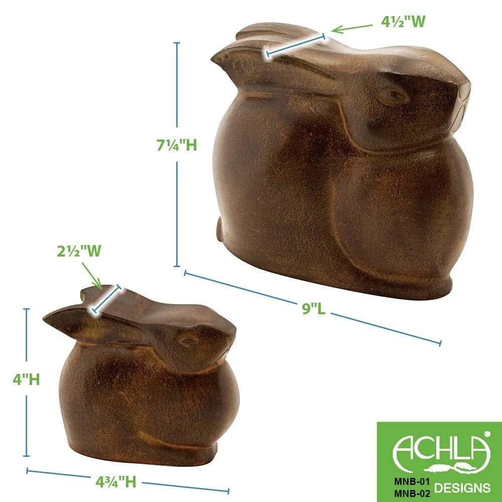 In many cultures, the markings on the surface of the moon were seen to form the outline of a rabbit, giving rise to many stories about this Moon Rabbit, most prominent in Chinese folklore and Aztec mythology. Our Moon Bunnies are stylized rabbits for the garden, in sizes, nestling down in the foliage. Charming Garden Accent- Our Moon Bunny yard ornaments are a sweet addition to any garden. Add an air of tranquility with Moon Bunny or a pair, nestled beneath your flowers and plants. These graceful rabbit garden statues will nicely complement any other animal statues or lawn decorations you have. Beautify your yard with a bunny! Decorate Any Space- Indoor or outdoor, use these decorative bronze rabbits as fun figurines or unique art sculptures in the home or garden. They can add to both modern and vintage décor. You could even add these bunnies to a nursery or Easter display. Cast Aluminum with Antique Bronze Finish: These bunny garden accents are specially crafted out of cast aluminum with antique bronze finish that will not rust. These statues are made to withstand most weather conditions, unlike breakable ceramic or glass, giving you extended years of use. Their earthy color makes them stand out in your garden without taking away from the surrounding natural beauty of your plantings. In Sizes: Choose the size appropriate for your garden or make a parent-baby pair. This Large Moon Bunny statue measures 3. 8 inches wide, 9. 25 inches long, and 7 inches tall, the small is 4 1/8-in L x 3 ¾-in H. Easy to put away when summer ends. At , we have created a full line of unique and handmade garden accessories and home furnishings for the plant enthusiast. We continue to add to our exquisite indoor-outdoor product line each year, resulting in a large selection of items for your home, yard, porch, patio, or garden decor.