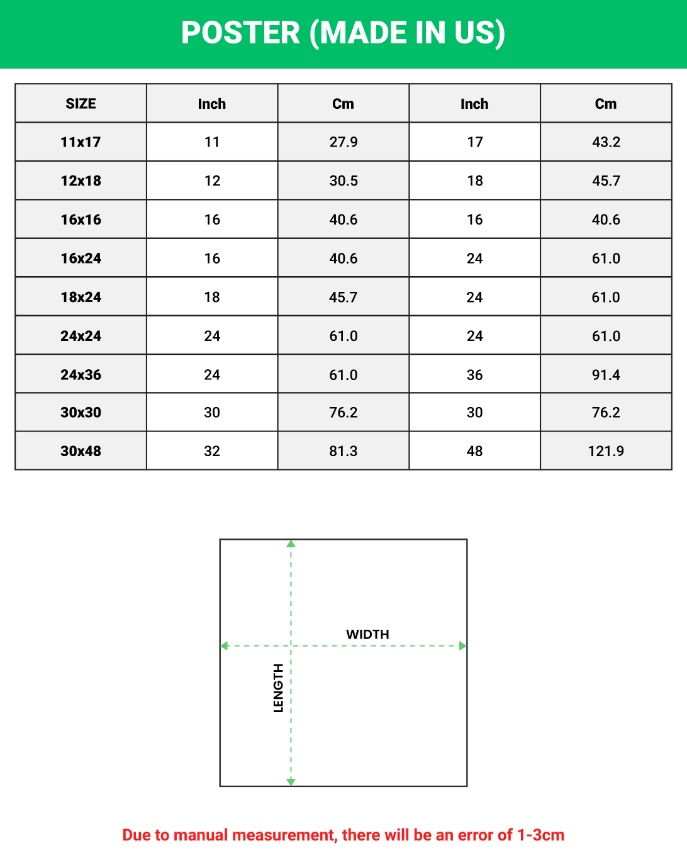 Custom Poster - Personalize Your Space with High-Quality Prints Bring life and character to your surroundings with our custom poster, designed to add a personal touch to any area. Whether it?s for your bedroom, living room, office, or dorm, our posters are made from premium materials to ensure lasting quality and vibrant colors. Key Product Details: Top-Grade Paper: Our posters are printed on heavyweight (230 gsm) resin-coated photo-base paper for durability and a high-quality feel. Vibrant Colors: The satin photo finish offers maximum color gamut, dmax, and image resolution, making your poster a stunning focal point in any room. Flexible Use: These frameless posters are perfect for decorating a wide range of spaces, including parties, kids? rooms, bathrooms, and more. Longevity: Enjoy your poster for up to 95 years indoors and 5 years in direct sunlight, ensuring it remains a cherished part of your décor. Protective Packaging: Shipped in a secure tube to prevent any damage during delivery. Order Processing & Shipping: Processing Time: Typically 1-3 business days. Shipping Time (US): Usually 3-5 business days. Potential Delays: Please allow an additional 2-6 days due to unforeseen external factors. Important Information for Customers: We stand by our product quality and offer clear return policies, covering the following cases: Delivery issues such as unsuccessful delivery or lost items. Damage to the product during shipping. Significant discrepancies between the product received and the listing description or images. Attention: Ensure that your shipping address is complete and accurate. We cannot be held responsible for delivery issues due to incorrect or incomplete address information. Customer Care Commitment: We prioritize your satisfaction and are here to assist with any concerns. If you experience any issues with your order, please contact us directly before leaving negative feedback or initiating a return. We are committed to resolving any problems to ensure a positive outcome for you. Closing Thoughts: If you are satisfied with your purchase, we would greatly appreciate a positive review. Your feedback is incredibly valuable to us and motivates us to continue delivering excellent service. Thank you for choosing our custom poster, and we hope to have the pleasure of serving you again!