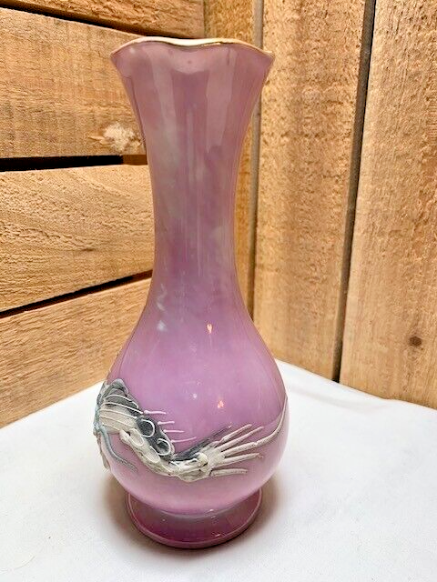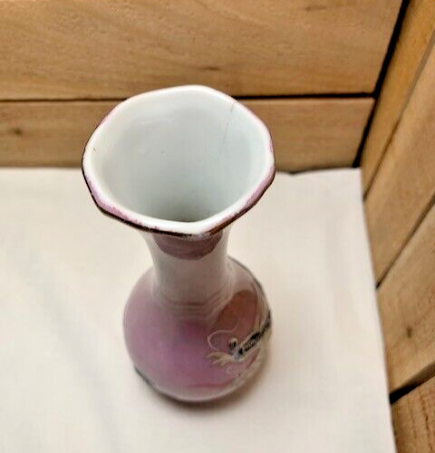 Vintage 6.5" Mauve Moriage Dragonware Vase. Small crack at the top rim of the vase and normal wear from use which can be seen in photos. Please see all photos as they are part of the description. We try to list as many details as possible, however some items are vintage and pre-owned so flaws are to be expected. We try to find out as much information as possible on each item we have available. On occasion we may make a mistake and appreciate your feedback.