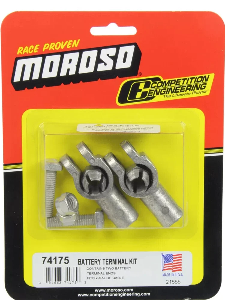 Moroso 74175 Battery Cable Post Terminal End Kit - Two Pack Part # 74175 Battery Post Terminal End Kit Moroso Details Compression-style fittings with tin plated brass for added conductiviy and corrosion resistance provide solid electrical connection Two per pack