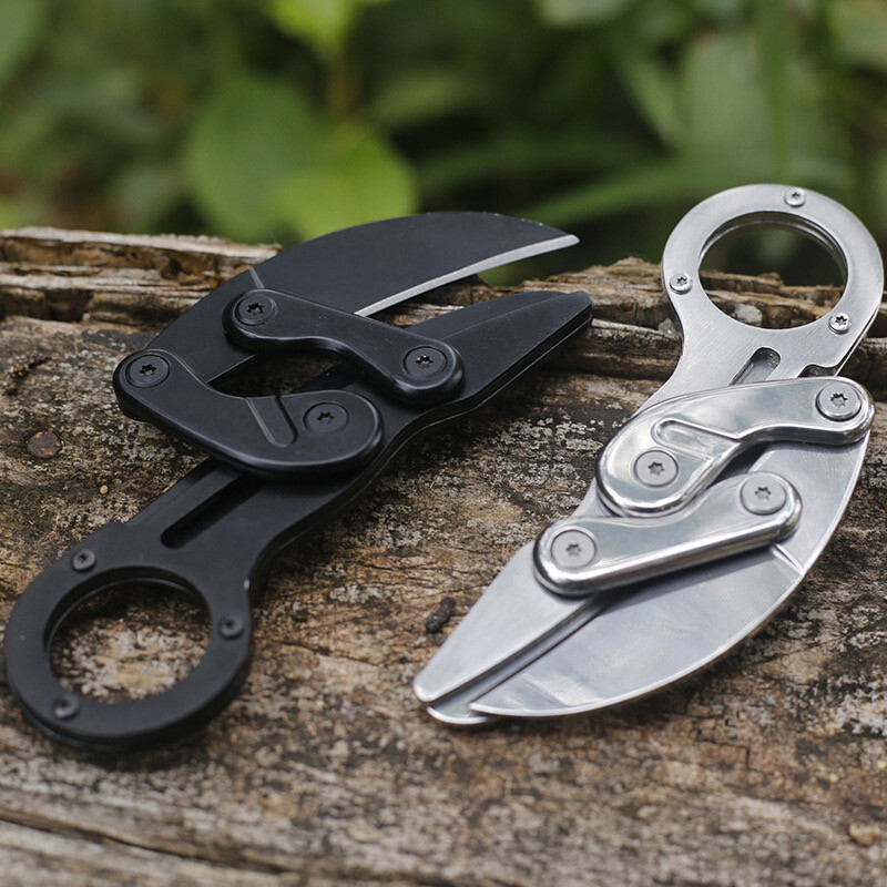 Produced by:GIRIAITUS-Cutlery Open Length: 15.5cm \ 6.1 inch Blade length: 5cm \ 1.96 inch Handle Thickness:10cm \3.94 inch Handle Length: 11.5cm \ 4.52 inch Blade width: 2cm \ 0.78 inch Blade thickness: 2.5mm Handle Material: stainless steel Blade material: 7cr15mo Lock:liner lock Net weight: 122g \4.3oz Hardness:58HRC Blade Surface:black coating ,and white mirror finish