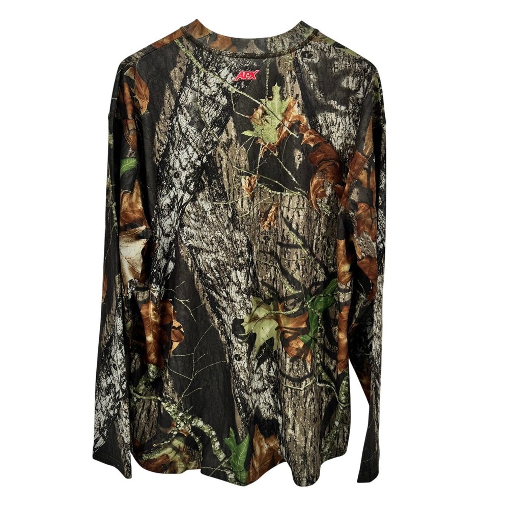 Mossy Oak Shirt Mens 2X APX Vapor Tec Break Up Camo Long Sleeve Pullover Very good condition, see all pictures for views. •Pit to pit: 27" •Shoulder to hem: 28" Front 31" Ships out same day or next open postal day. Thank you for your purchase, we appreciate you!