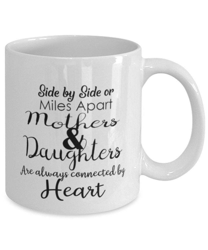From Daughter Funny Coffee Mug Miles Apart Together At Heart Mother's Day Gift Product Details.. This high quality 11oz. ceramic white mug has a premium hard coat that provides crisp and vibrant color reproduction sure to last for years. Perfect for all hot & cold beverages. The highest quality printing possible is used. It will never fade no matter how many times you wash it. Material: 100% Ceramic. Print both sides. Dishwasher and Microwave Safe. High Gloss + Premium White Finish. Printed in the U.S.A. Personalized & Custom. We support personalized and custom mug to add custom, when placing an order, you can add notes to the "order note" in shipping address section. Also you can contact us directly via message. Shipping Info. Ready to ship in 1 to 2 business days, All products are made-to-order and proudly printed in the United States. Shipped by USPS and DHL, You will receive your order in 5-7 days. Replace & Refund. All products are defective during shipping broken, chipped will be replaced free of charge. You are not satisfied with the product, we will refund 100% money to you. If any other issues arise, please do not hesitate to message, we would be more than happy to assist you.