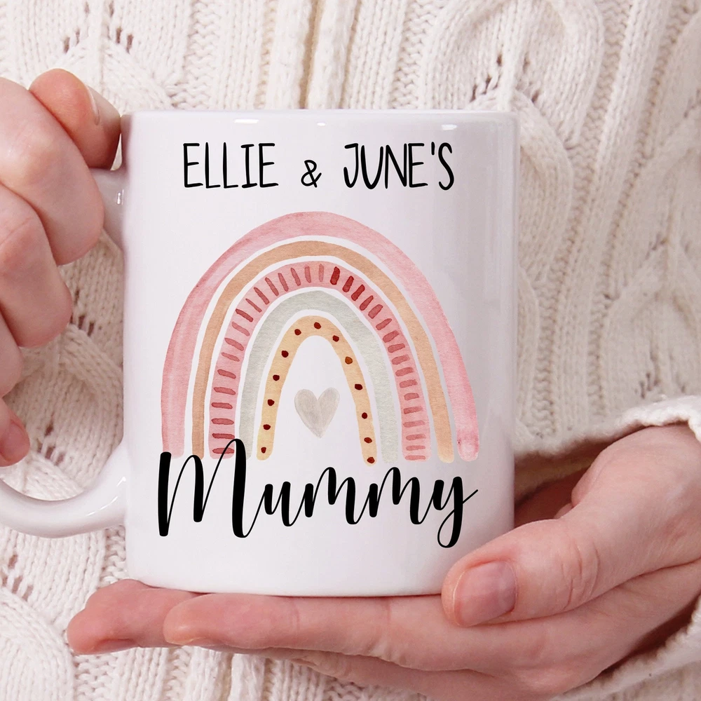 Mothers Day Mug Mama Mug With Rainbow Print Custom Children Names Mama Rainbow Product Details.. This high quality 11oz. ceramic white mug has a premium hard coat that provides crisp and vibrant color reproduction sure to last for years. Perfect for all hot & cold beverages. The highest quality printing possible is used. It will never fade no matter how many times you wash it. Material: 100% Ceramic. Print both sides. Dishwasher and Microwave Safe. High Gloss + Premium White Finish. Printed in the U.S.A. Personalized & Custom. We support personalized and custom mug to add custom, when placing an order, you can add notes to the "order note" in shipping address section. Also you can contact us directly via message. Shipping Info. Ready to ship in 1 to 2 business days, All products are made-to-order and proudly printed in the United States. Shipped by USPS and DHL, You will receive your order in 5-7 days. Replace & Refund. All products are defective during shipping broken, chipped will be replaced free of charge. You are not satisfied with the product, we will refund 100% money to you. If any other issues arise, please do not hesitate to message, we would be more than happy to assist you.
